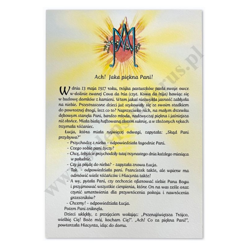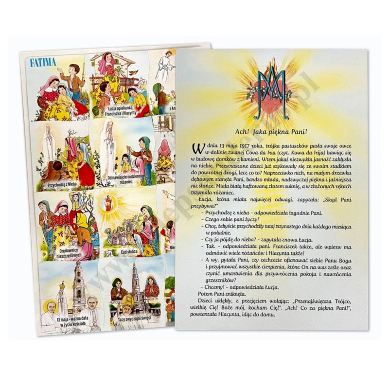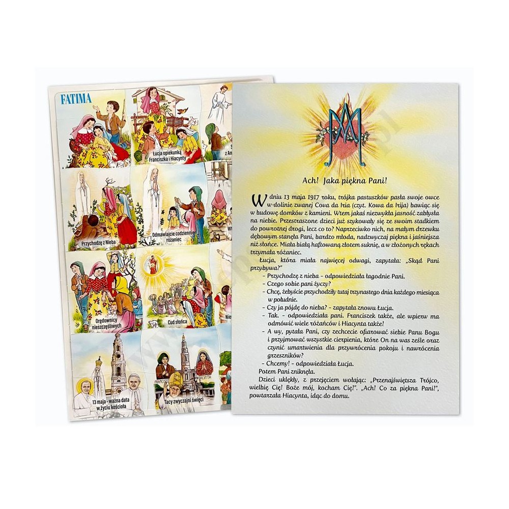 Piękna i praktyczna kontrolka nabożeństw majowych z motywem Matki Bożej Fatimskiej. Idealna do wykorzystania w parafiach, wspólnotach, szkołach i podczas przygotowania dzieci do I Komunii Świętej.