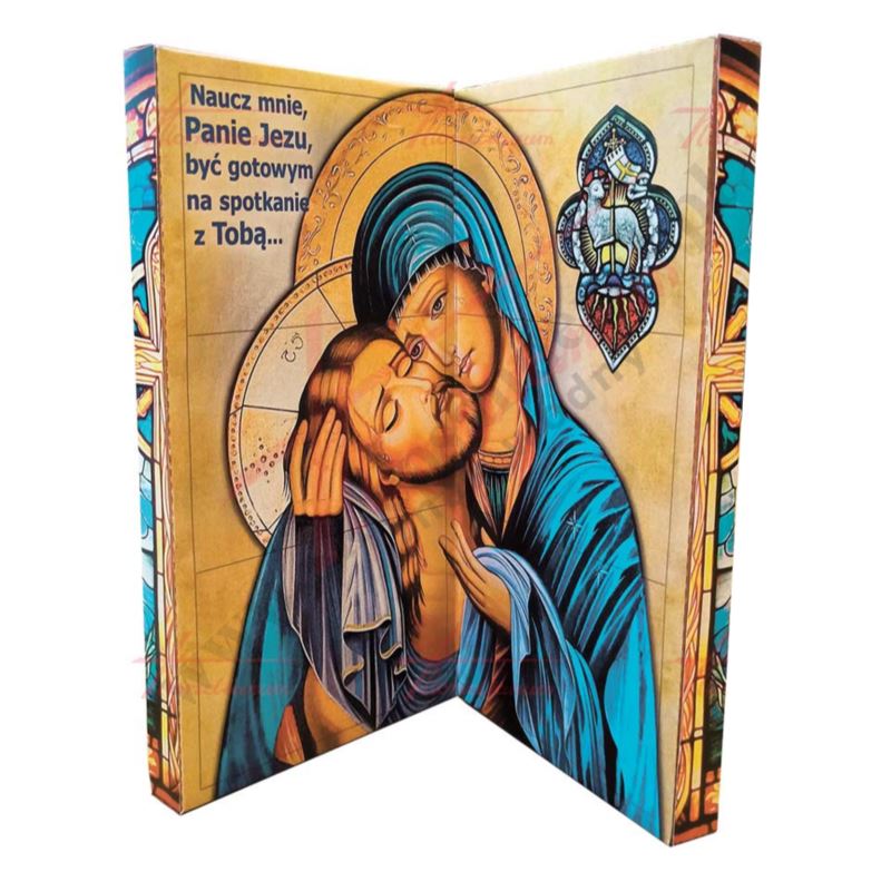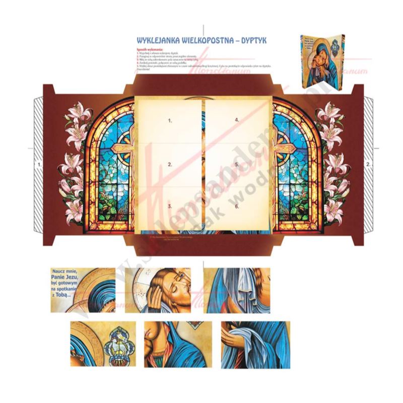 Przedstawiamy wyklejankę wielkopostna w formie dyptyku. Część wewnętrzna to 6 naklejek, które utworzą ikonę Matki Bożej Bolesnej.