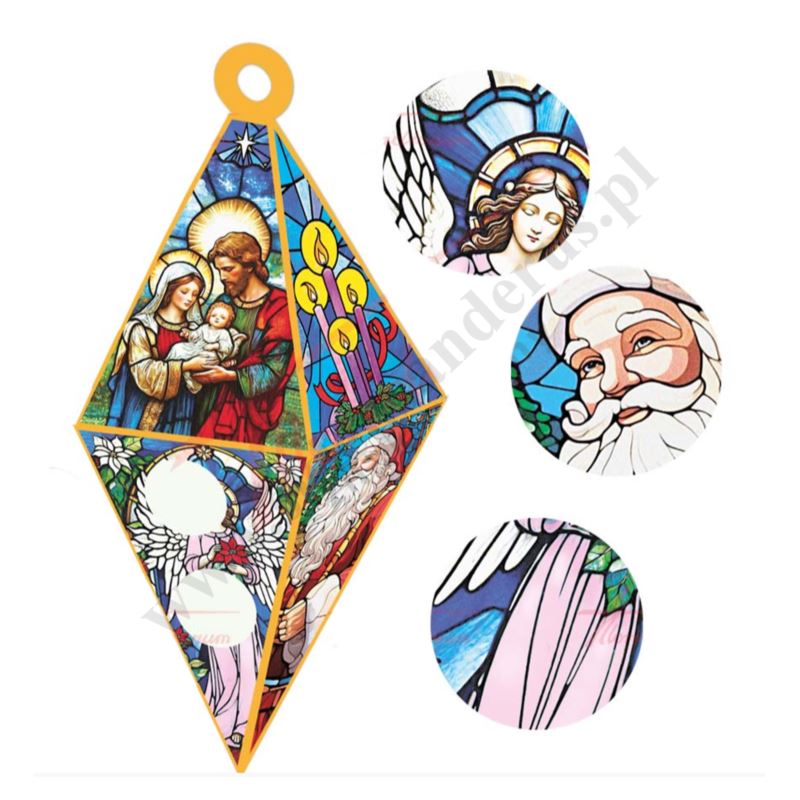 Wyklejanka adwentowa w formie bombki - sopla z 18 elementami do wyklejenia. Sprzedawana w paczkach po 10 sztuk.