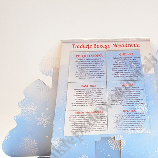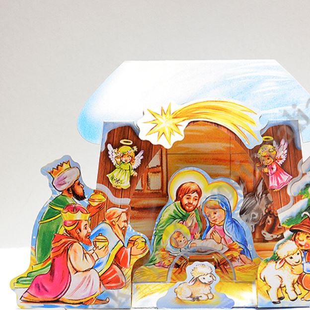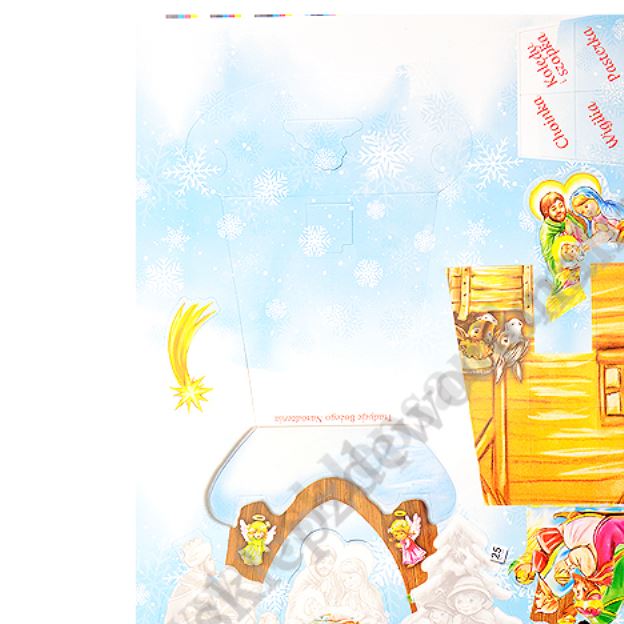 Kontrolka roratnia w postaci kartonowej szopki do składania zbudowanej z 24 elementów. Sprzedaż w kompletach po 25 szt.