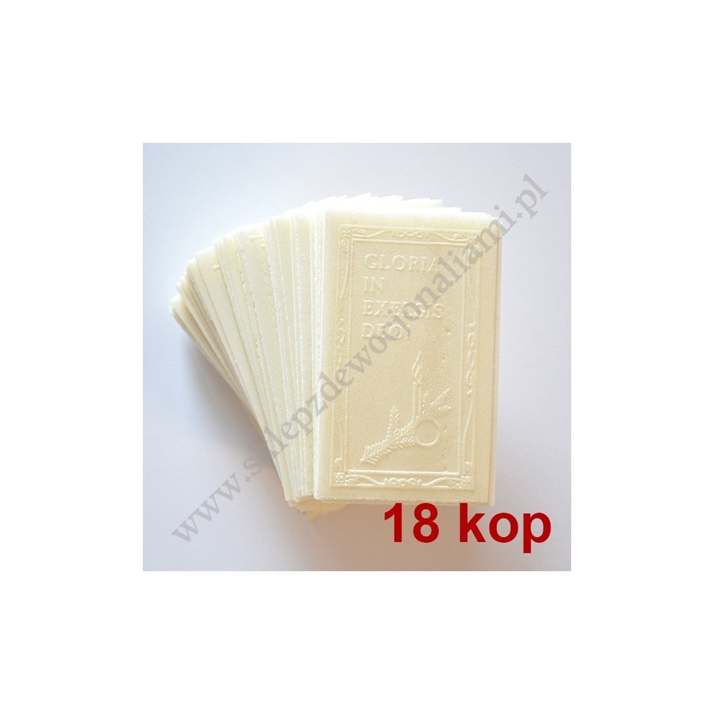 18 Kop (w kopie 60 szt.) małych opłatków wigilijnych w formacie 6 x 10 cm.