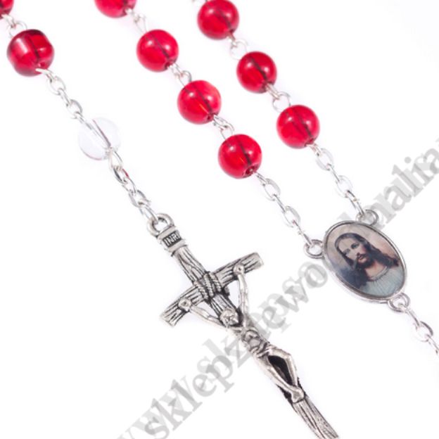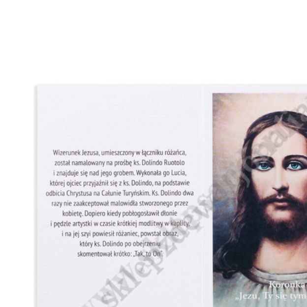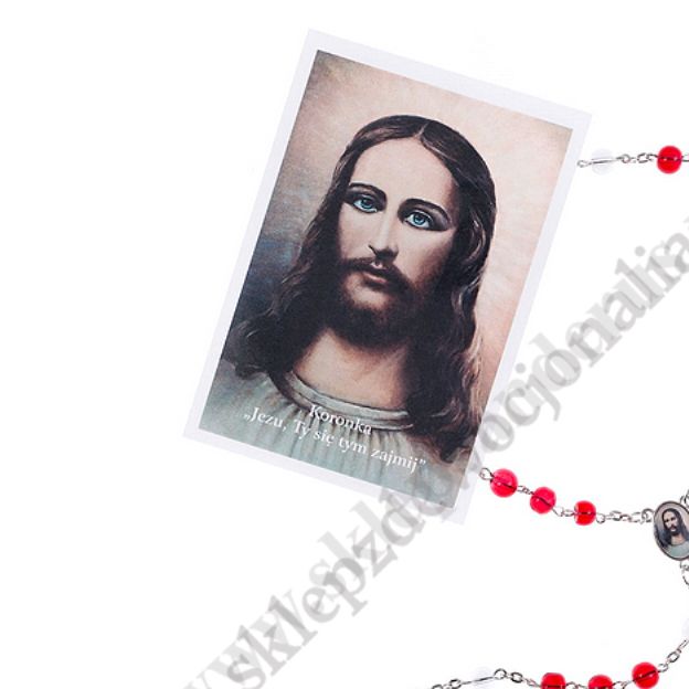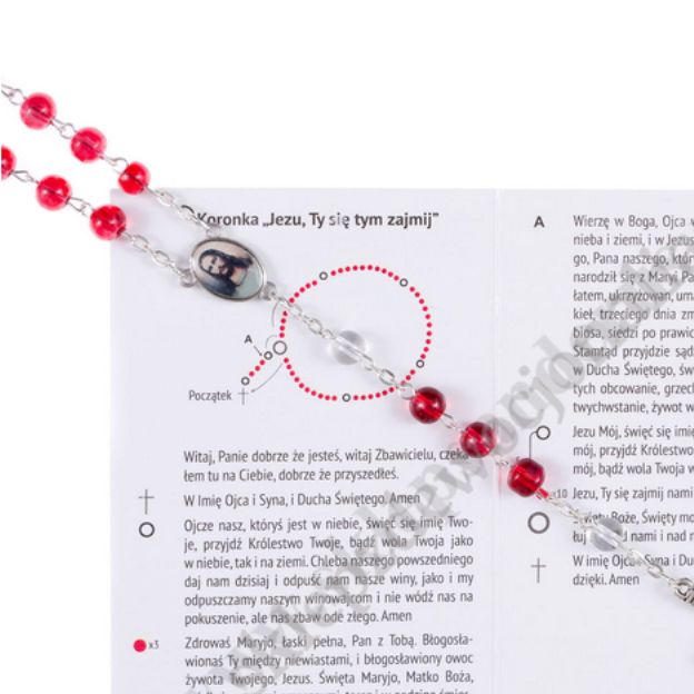 Koronka "Jezu Ty się tym zajmij" z instrukcją obsługi. Koraliki wykonane ze szkła o średnicy 6 mm.