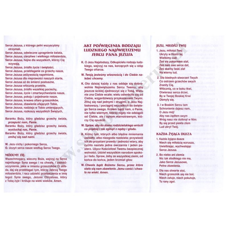 Litania do Najświętszego Serca Pana Jezusa w postaci folderu w formacie po złożeniu 10 x 21 cm. Sprzedaż w paczkach po 25 szt.