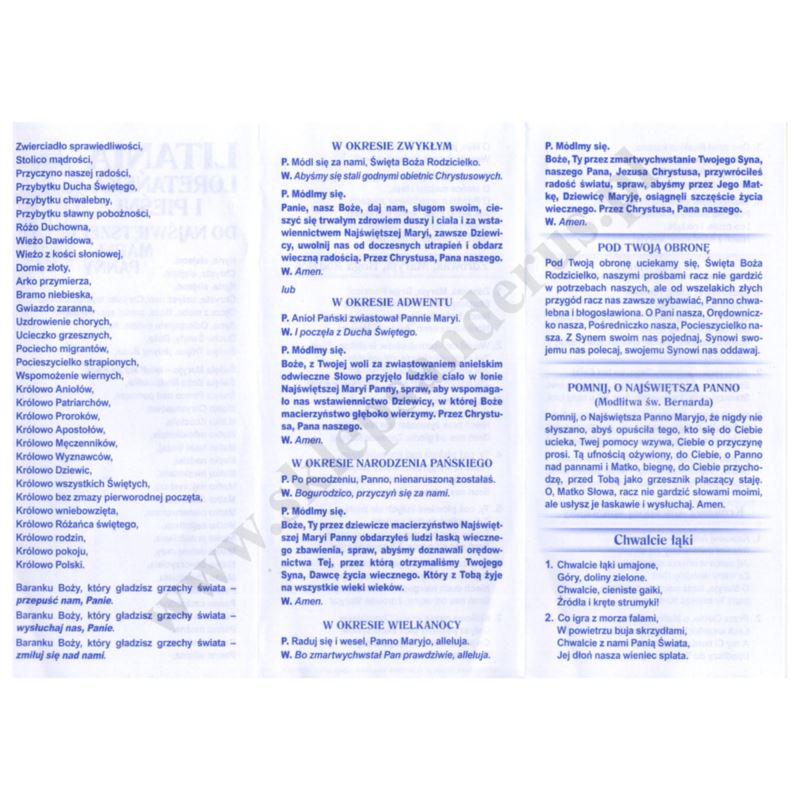 Litania Loretańska i pieśni do Najświętszej Maryi Panny w postaci folderu w formacie po złożeniu 10 x 21 cm. Sprzedaż w paczkach po 25 szt.