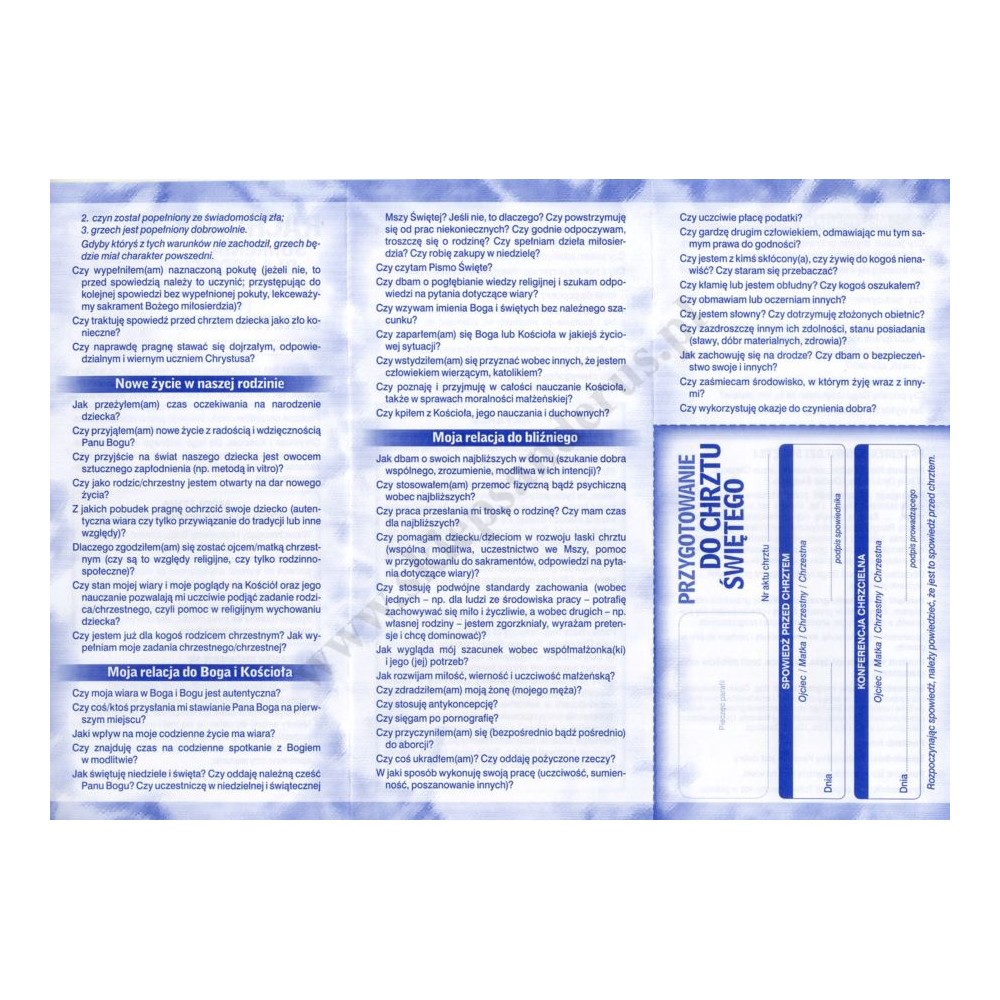 Bardzo przejrzysty, w formie prostych pytań opartych na najważniejszych dla chrześcijanina prawdach rachunek sumienia przygotowany z myślą o rodzicach i chrzesnych przygotowujących się do sakramentu chrztu...