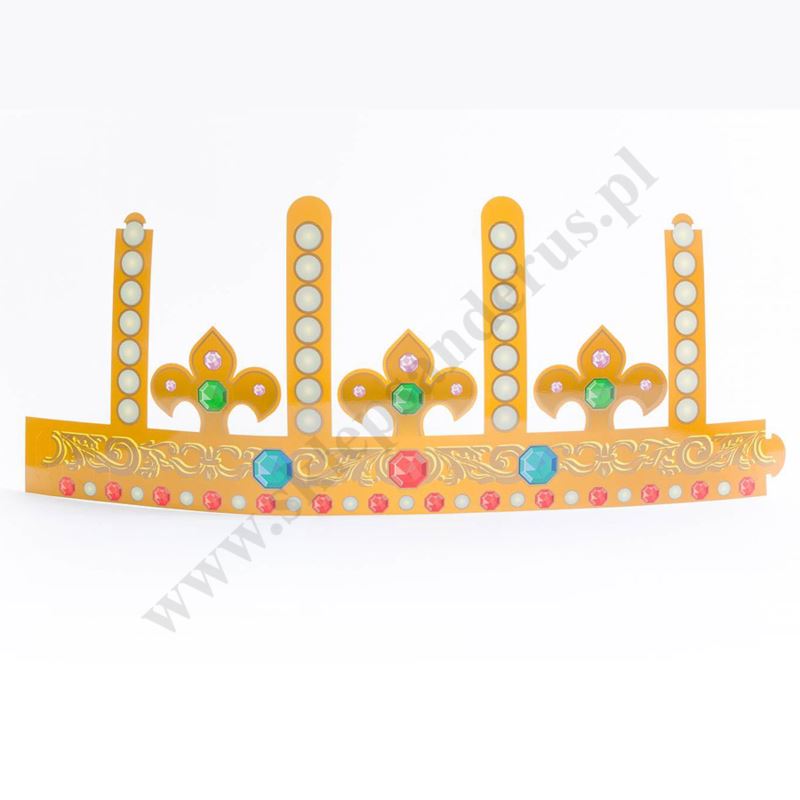 Korona papierowa z regulowanym obwodem: min. 52 cm, max. 60 cm. Doskonała dekoracja na Jasełka Bożonarodzeniowe oraz orszak Trzech Króli.