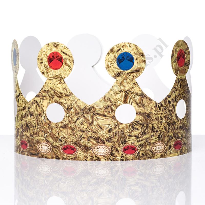 Papierowa korona do składania na Orszak Trzech Króli. Regulowany obwód głowy, wysokość korony 7.5 cm.