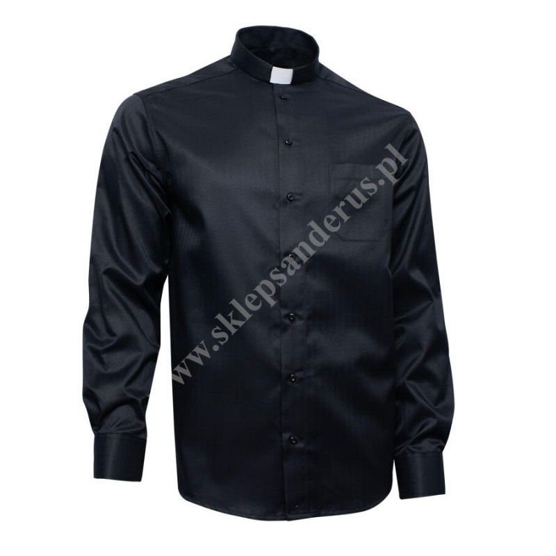 KOSZULA KAPŁAŃSKA - DŁUGI RĘKAW CZARNY - 100% BAWEŁNY