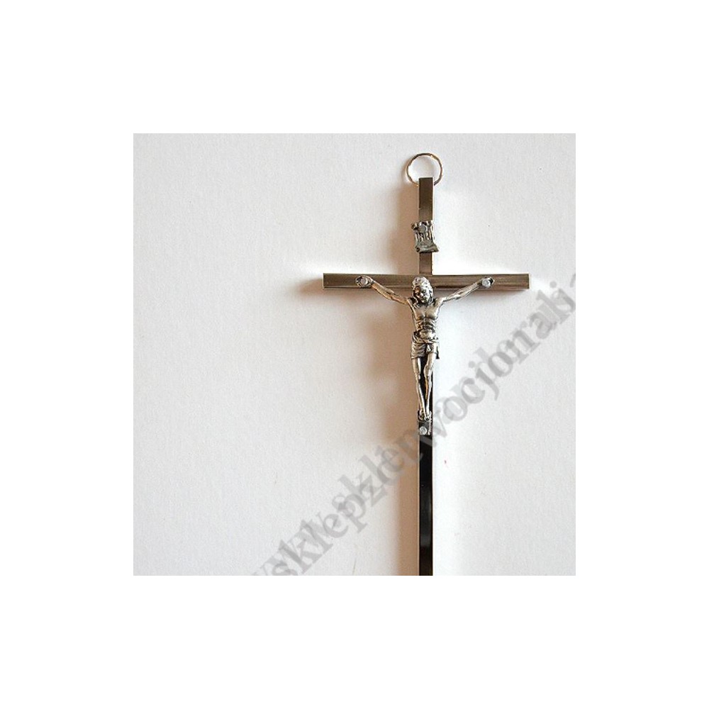 Metalowy krzyżyk o wysokości 18 cm z metalowym korpusem Pana Jezusa.