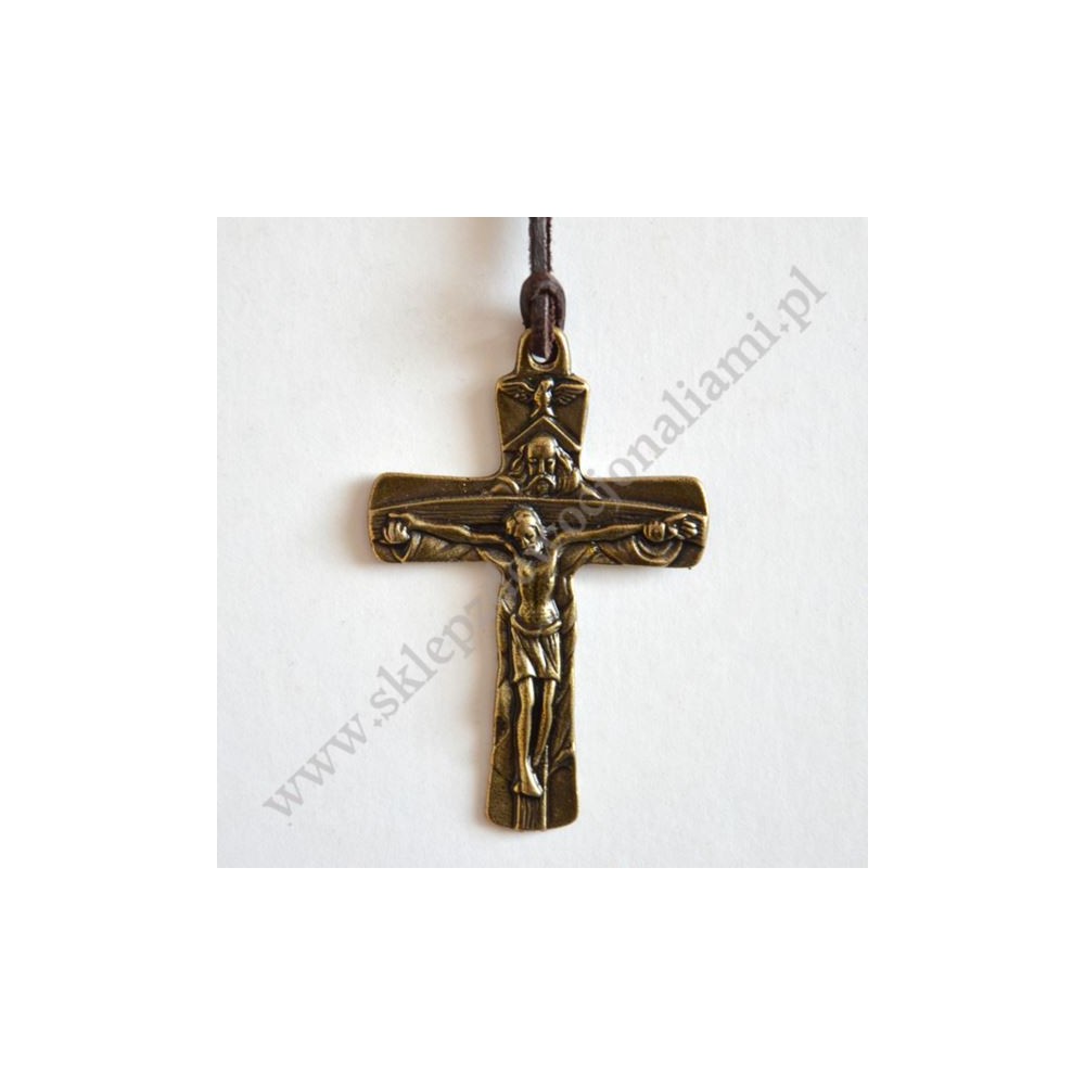 Metalowy krzyżyk do bierzmowania z rzemykiem. Wysokość krzyżyka 6.8 cm