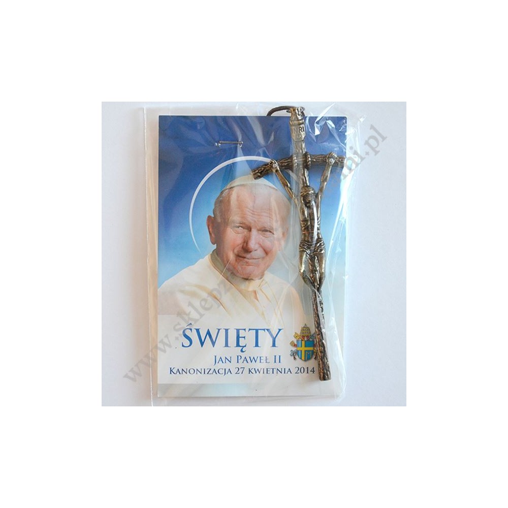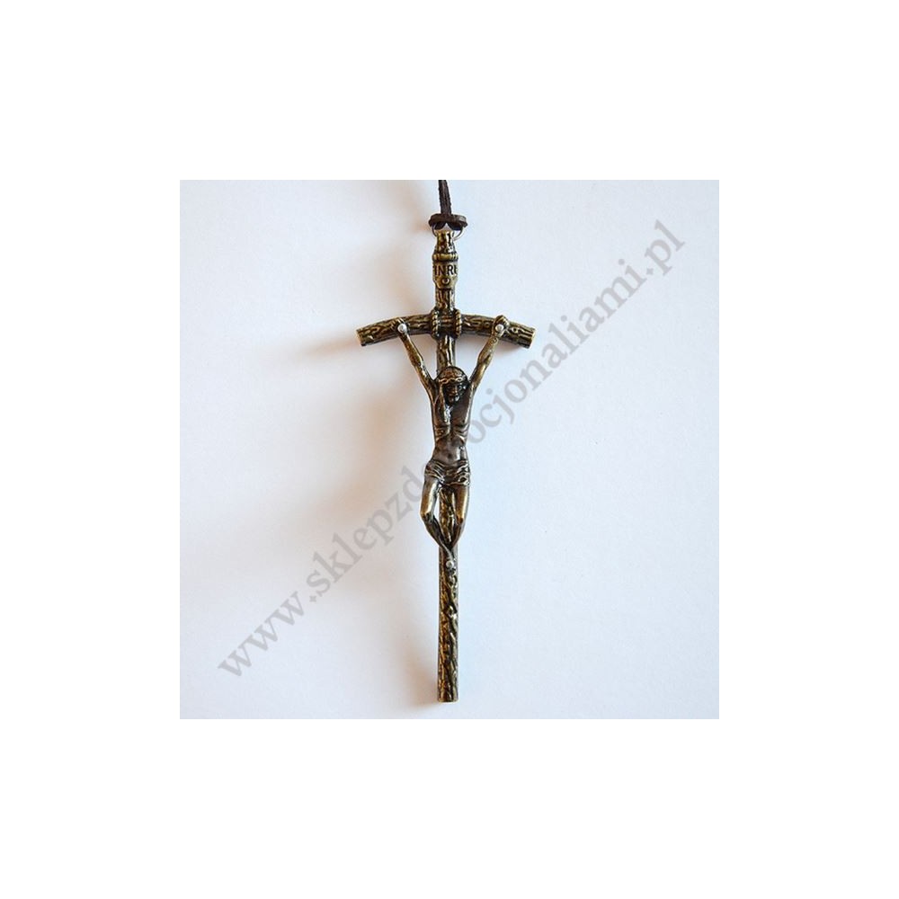 Krzyż papieski metalowy z rzemykiem w kolorze złotym jako wspaniała pamiątka sakrametu bierzmowania. Wysokość krzyża - 14 cm, szerokość ramion - 5,5 cm.