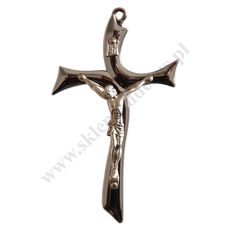 Metalowy krzyżyk o wysokości 10 cm i szerokości 5.7 cm.