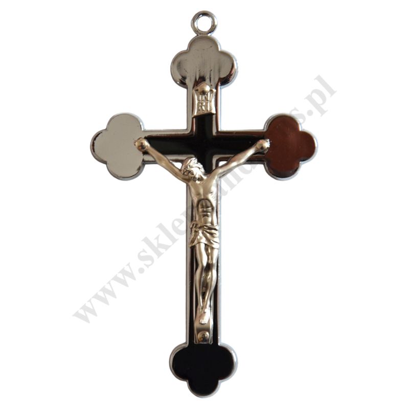 Metalowy krzyżyk o wysokości 10 cm i szerokości 6 cm.