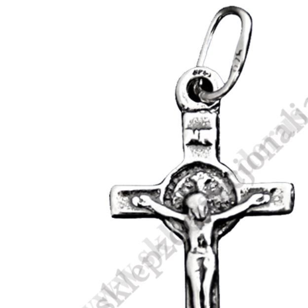 Srebrny krzyżyk o wysokości z uszkiem 2.5 cm, szerokość krzyżyka 1.2 cm, waga 1.0 g, próba srebra PR 925.