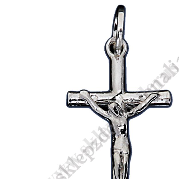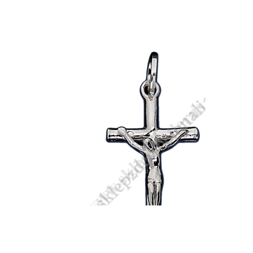 Srebrny krzyżyk o wysokości z uszkiem 3.7 cm, szerokość krzyżyka 1.8 cm, waga 2.8 g, próba srebra PR 925.
