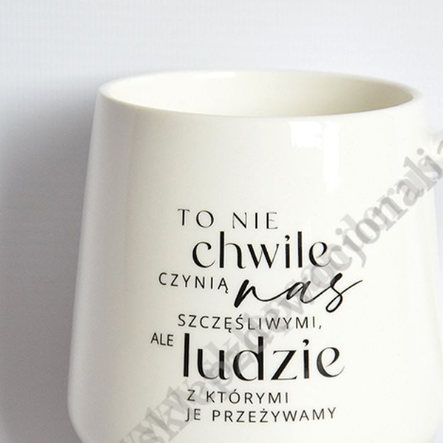 Kubek z tekstem "To nie chwile czynią nas szczęśliwymi ale ludzie z którymi je przeżywami".