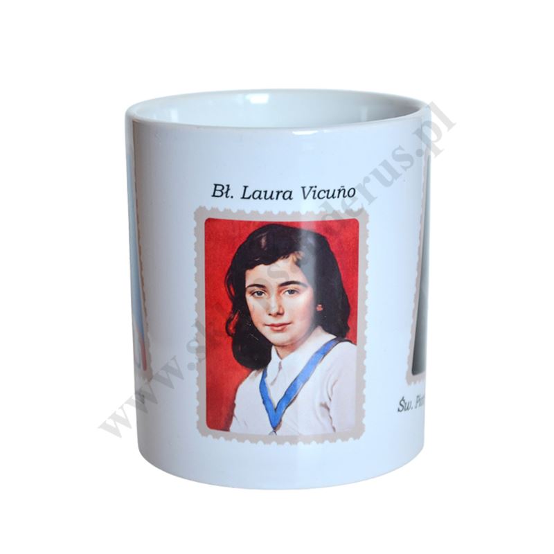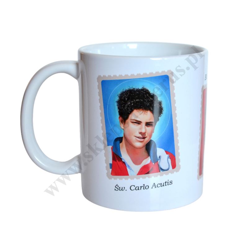 Kubek z wizerunkiem św.Carlo Acutisa, bł. Laury Vicuna oraz św.Pier Giorgio Frassatiego.
