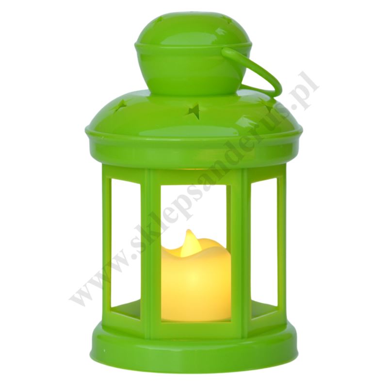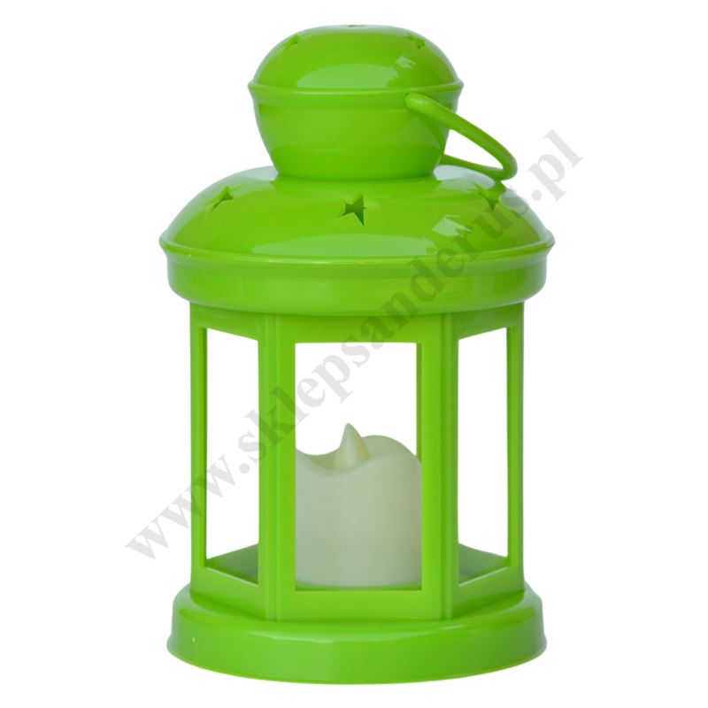 Lampion roratni - adwentowy wykonany z tworzywa sztucznego w kolorze zielonym z oświetleniem na baterię, doskonale imitującym palącą się świece.