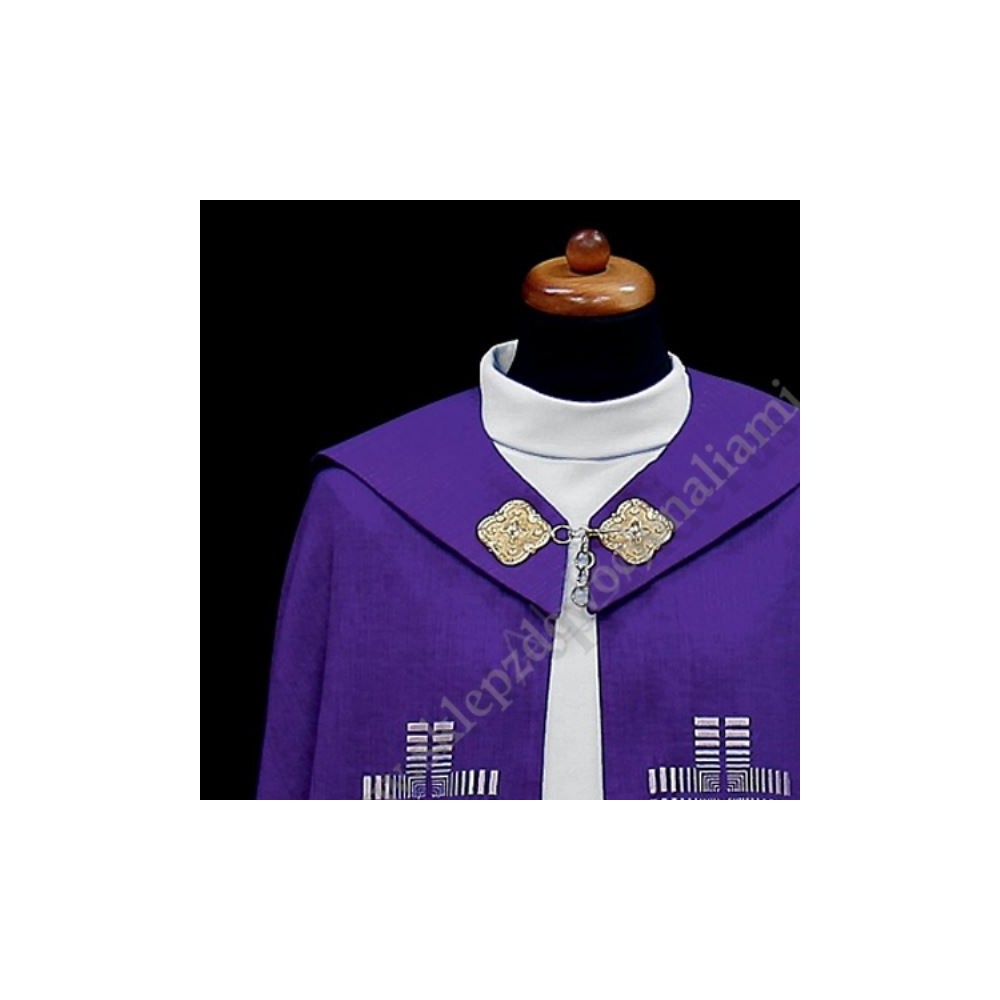 Elegancka kapa haftowana ozdobiona złota kutą klamrą.
