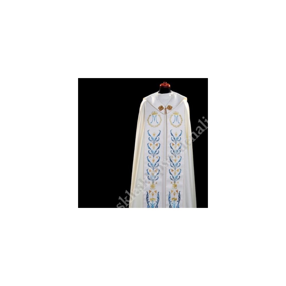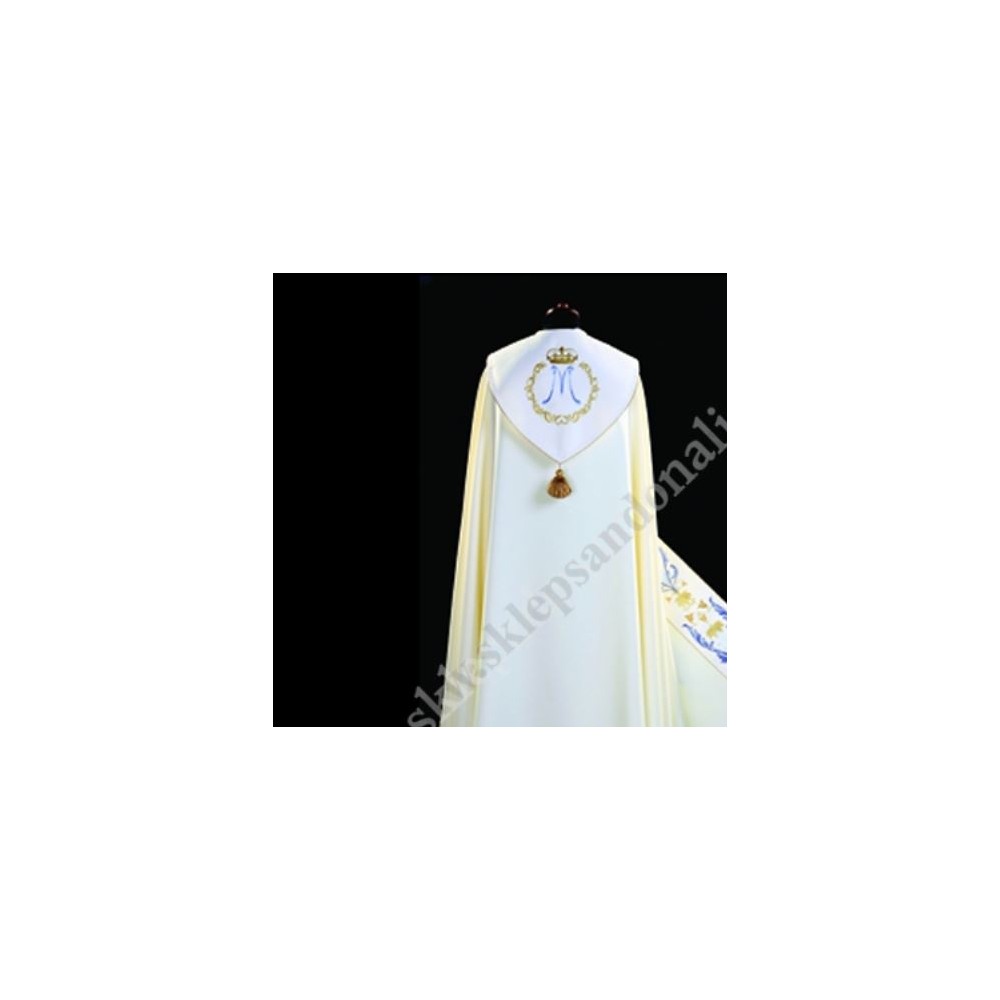 Elegancka kapa Maryjna bogato haftowana nićmi w kolorze złota i błękitu.
