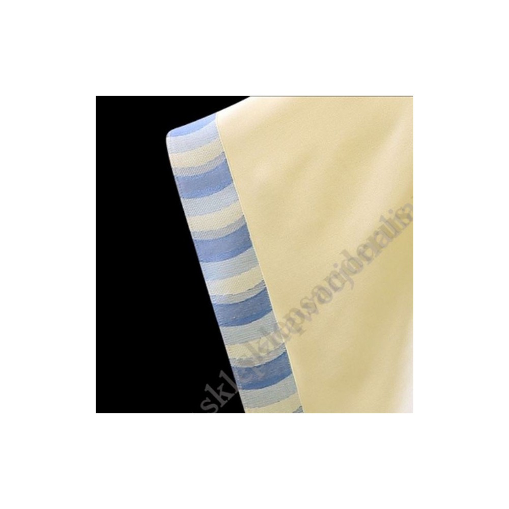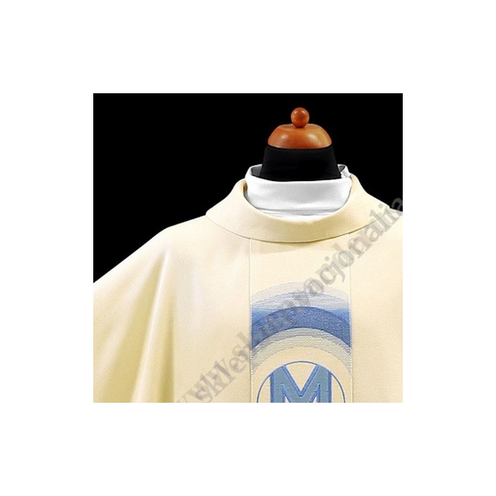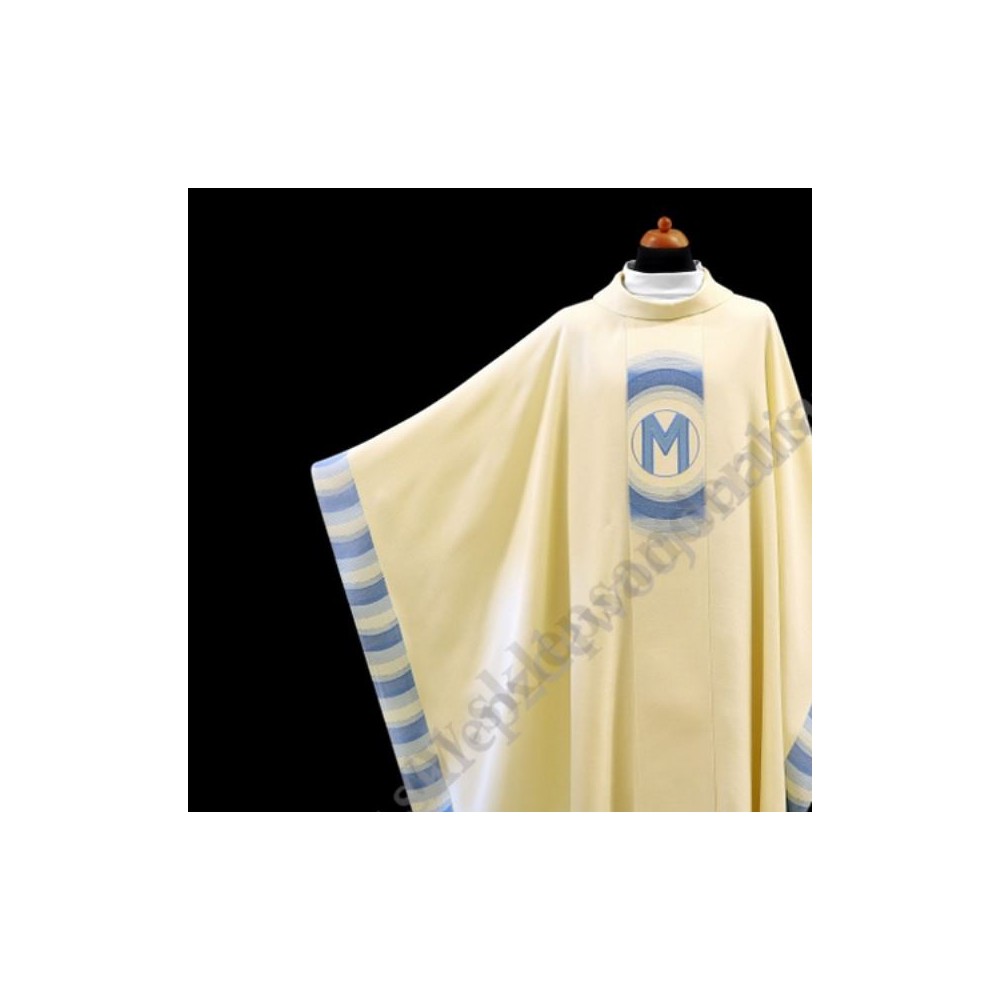 Ornat wykonany z lekkiej tkaniny z nowoczesnym haftem na pasie i po bokach.