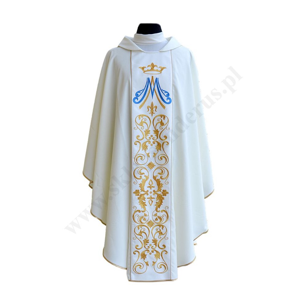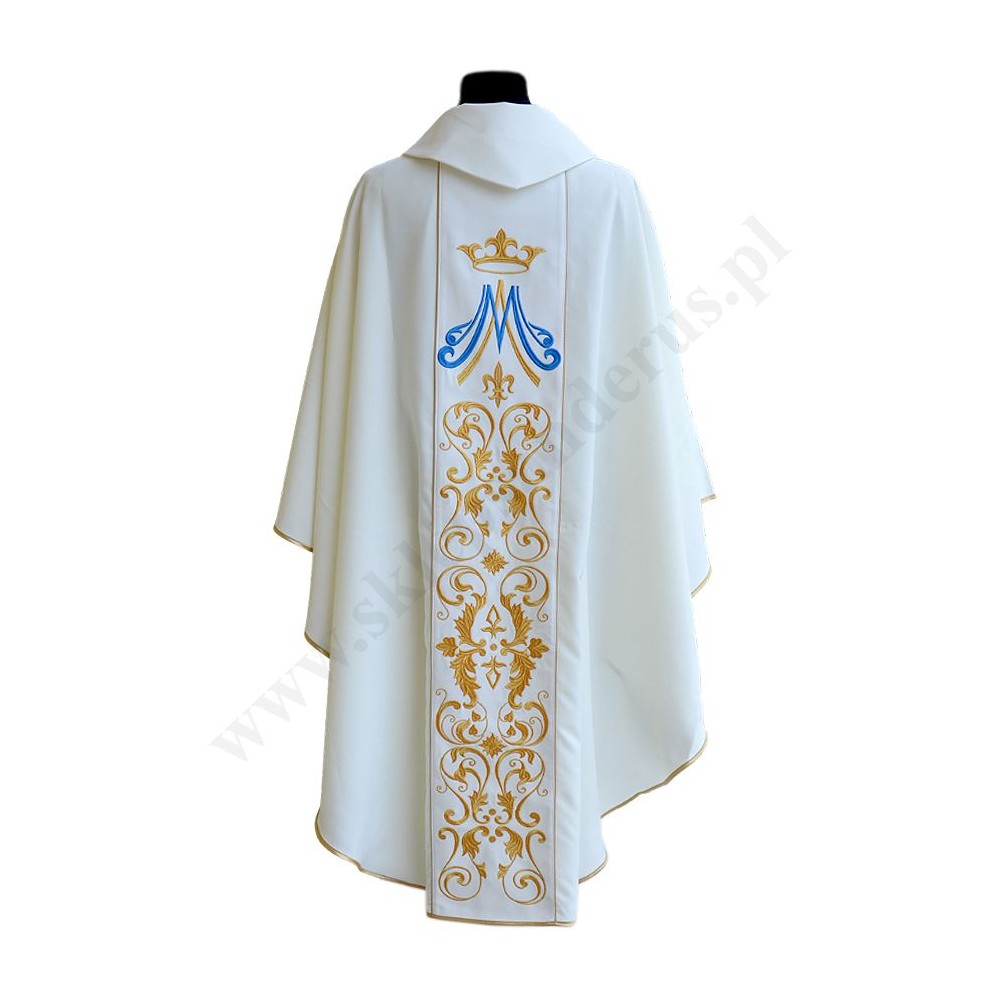 Ornat z pasami haftowanymi komputerowo. Wykonany z lekkiego i przyjemnego w dotyku materiału. W komplecie zawsze stuła wewnętrzna. Standardowe wymiary ornatu: szerokość 160 cm, długość: 130 cm.