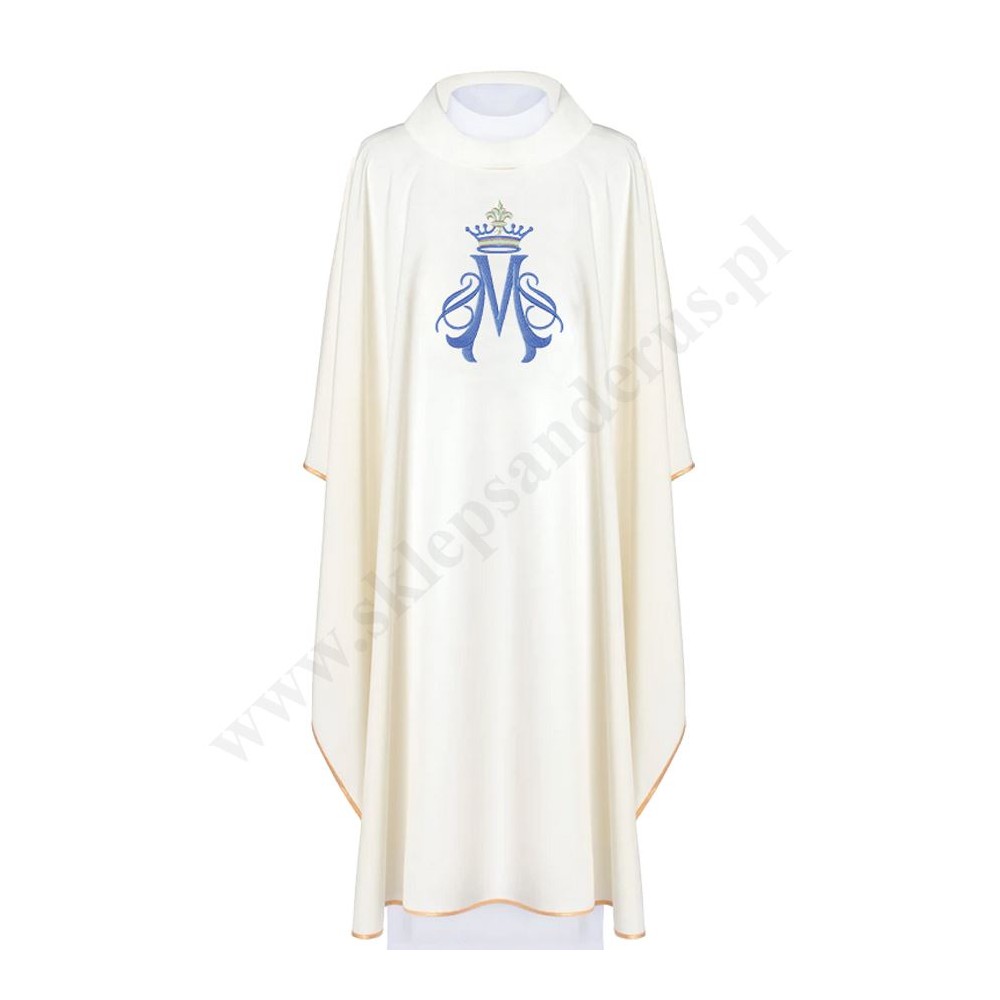 Ornat maryjny mistrzowsko wykonanym, by uczcić Najświętszą Maryję Pannę. Ornat ten to połączenie doskonałej jakości tkaniny, haftowanie wykonanych detali oraz głębokiego szacunku dla religijnych tradycji.