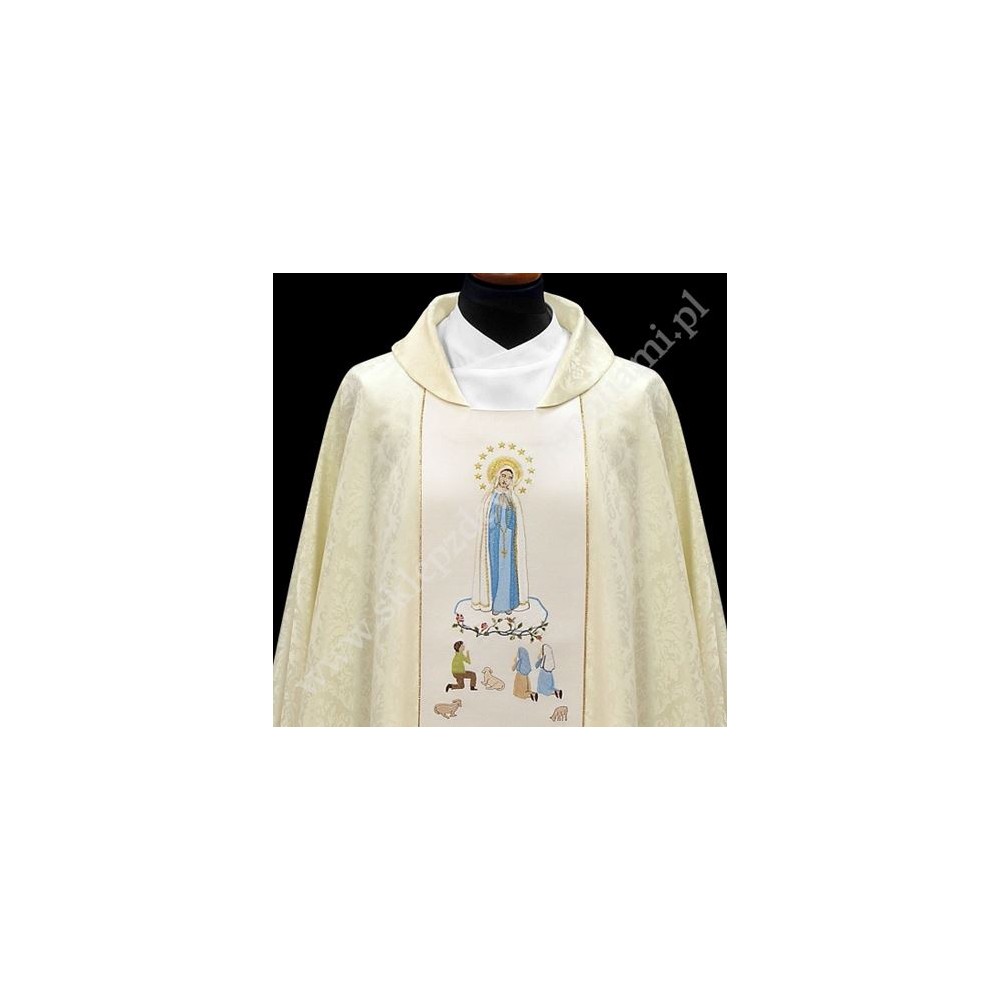 Ornat haftowany - Matka Boża z Fatimy, z postaciami dzieci uszyty w stylu monastycznym ze stuła wewnętrzną