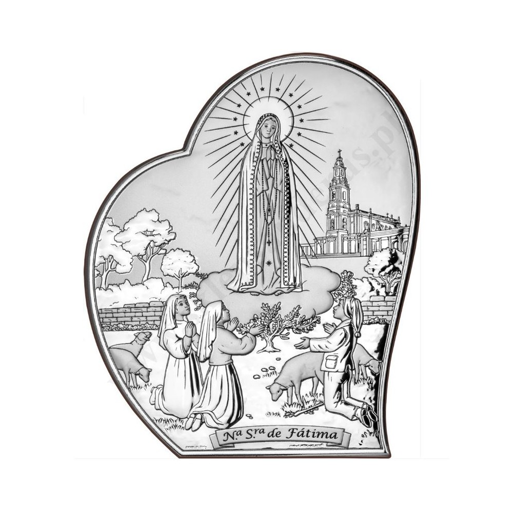Srebrny obrazek przedstawiający Matkę Bożą Fatimską . Rozmiar obrazka 13 x 15 cm. PONIŻEJ W PRODUKTACH POWIĄZANYCH ISTNIEJE MOŻLIWOŚĆ ZAMÓWIENIA OKAZJONALNEJ DEDYKACJI NA TABLICZCE LUB REWERSIE OBRAZKA.