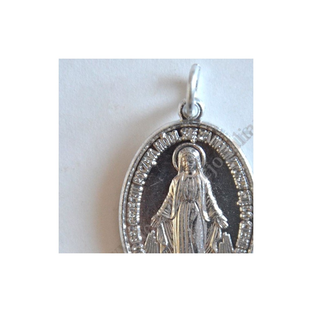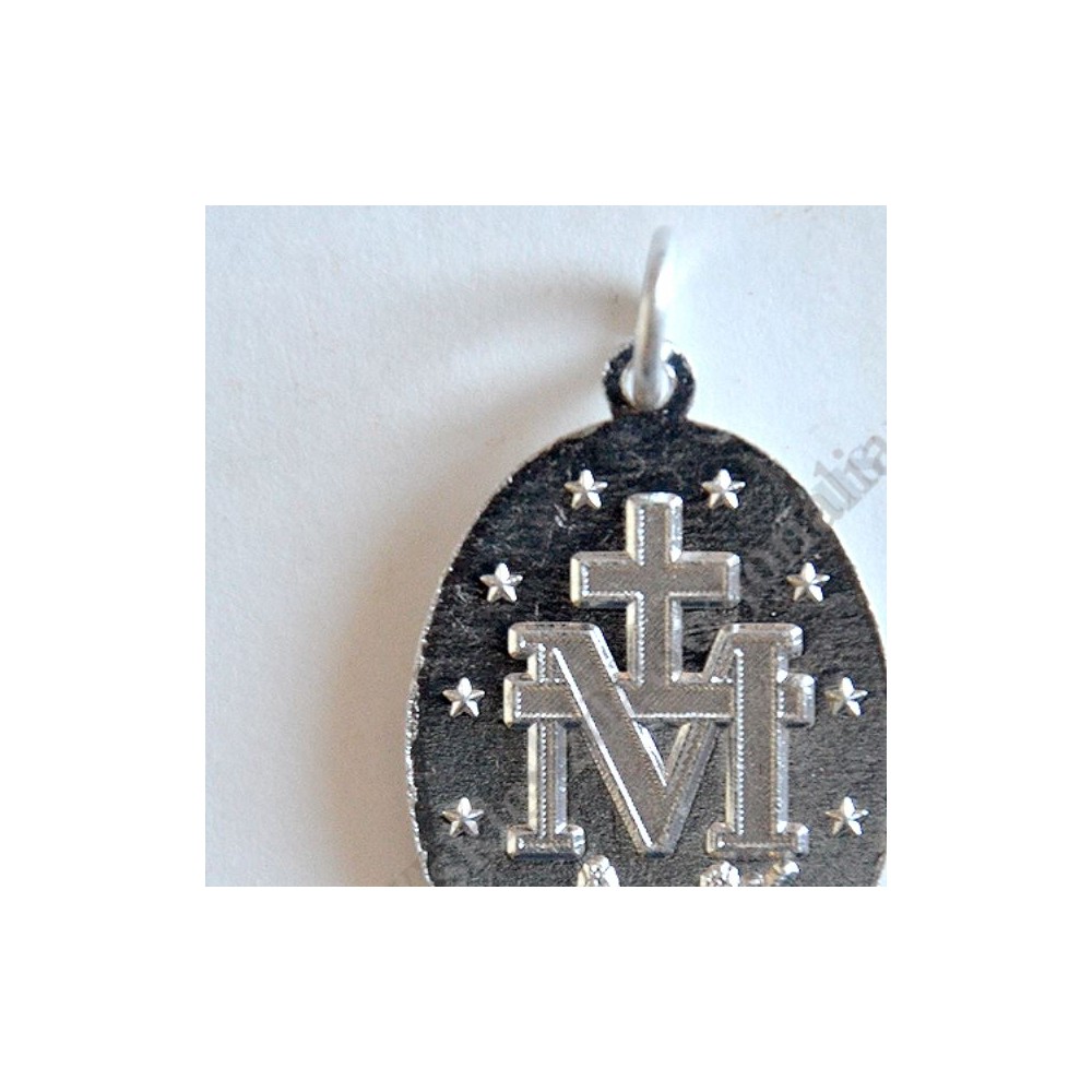 Aluminiowy medalik Matki Bożej Niepokalanej, tak zwany "cudowny medalik" o wysokoci 3.5 cm i szerokości 2.5 cm.