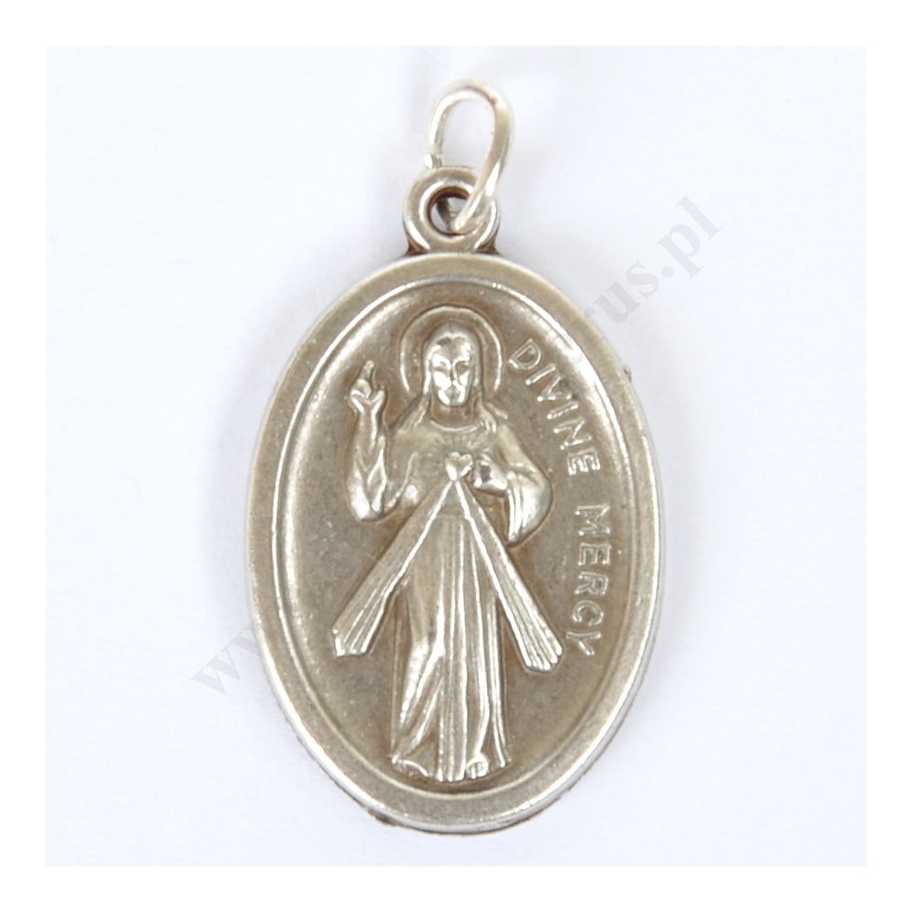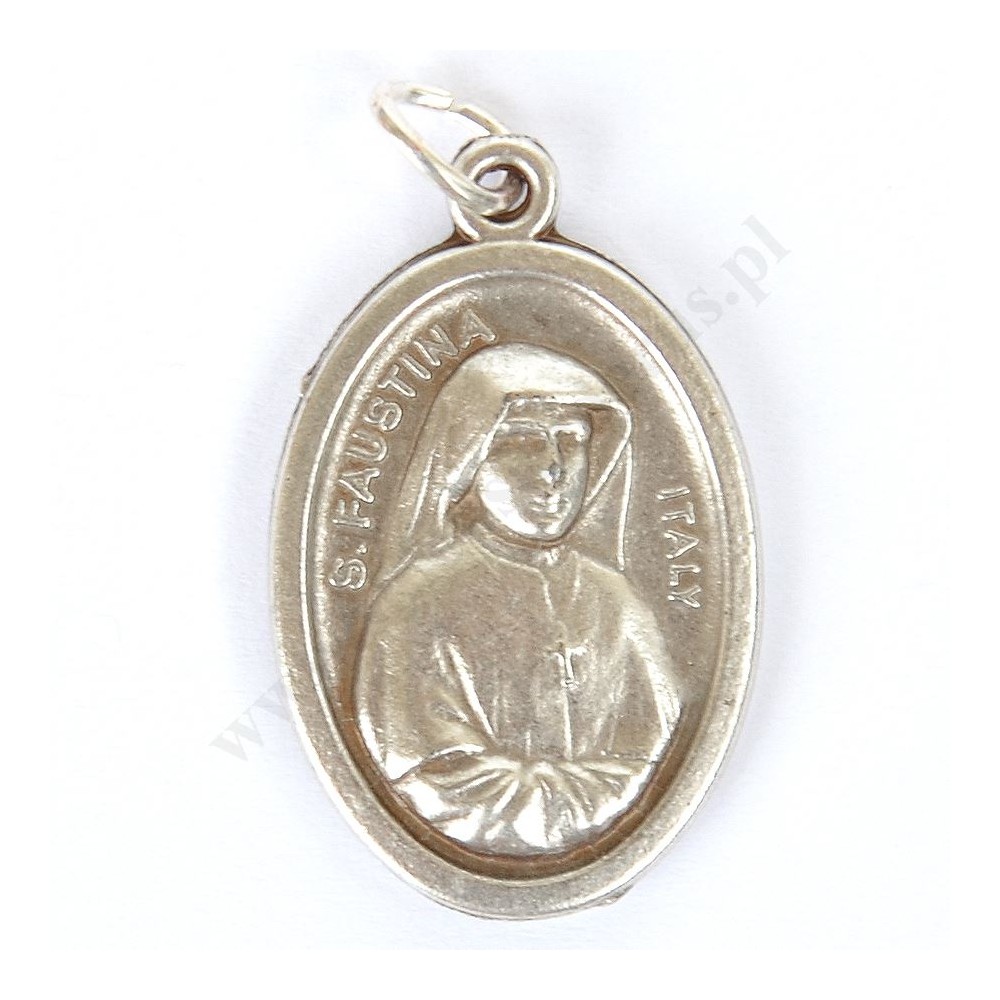 Medalik oksydowany Świętej Faustyny o wysokości 2.1 cm i szerokości 1.5 cm.
