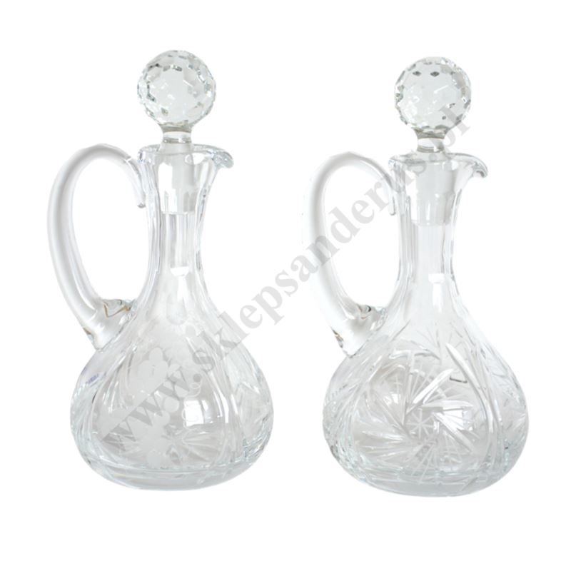 Komplet kryształowych ampułek mszalnych na wino i wodę o wysokości 20 cm.