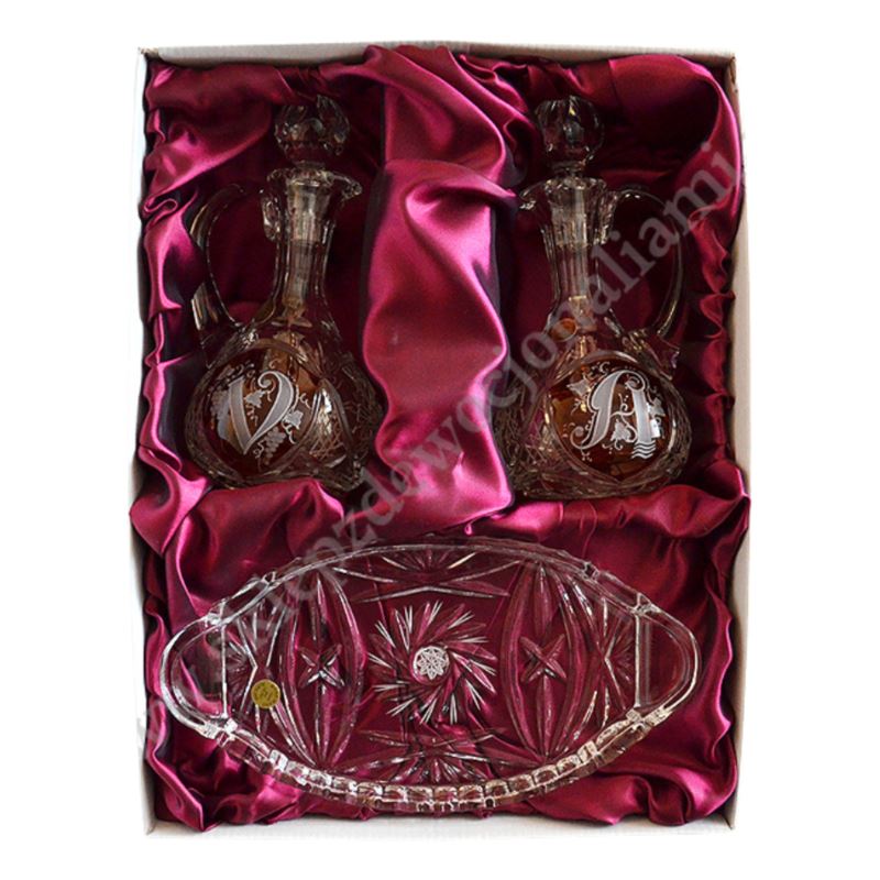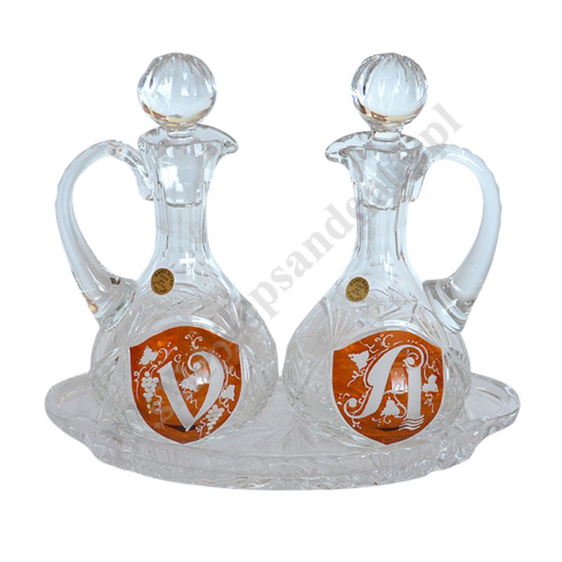 Kryształowy komplet ampułek wraz z tacką. W skład kompletu wchodzą: dwie ampułki, tacka pod ampułki. Komplet ampułek zapakowany jest w stylowe, kartonowe pudełko.