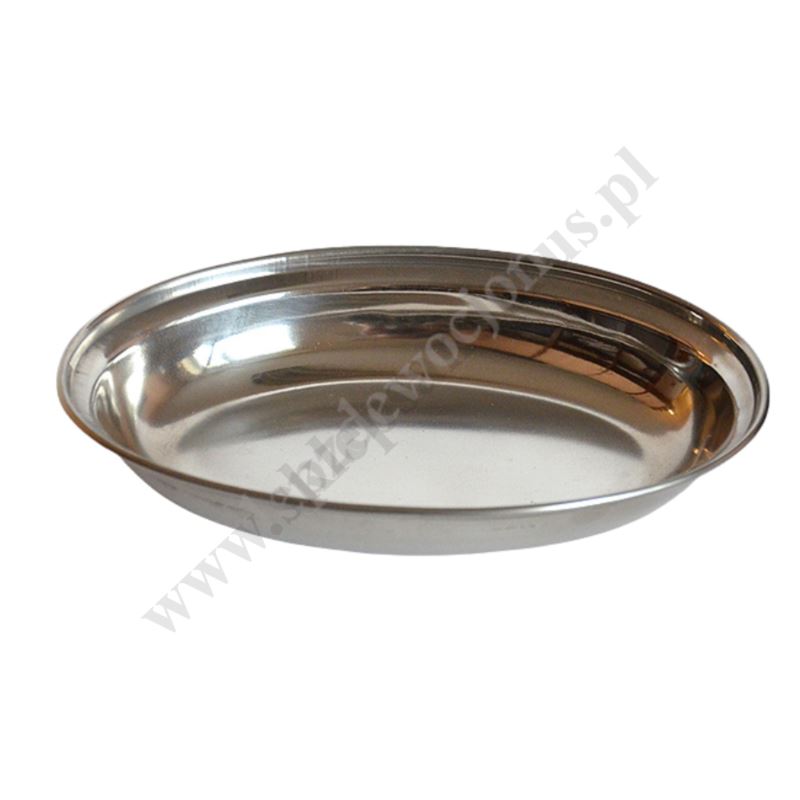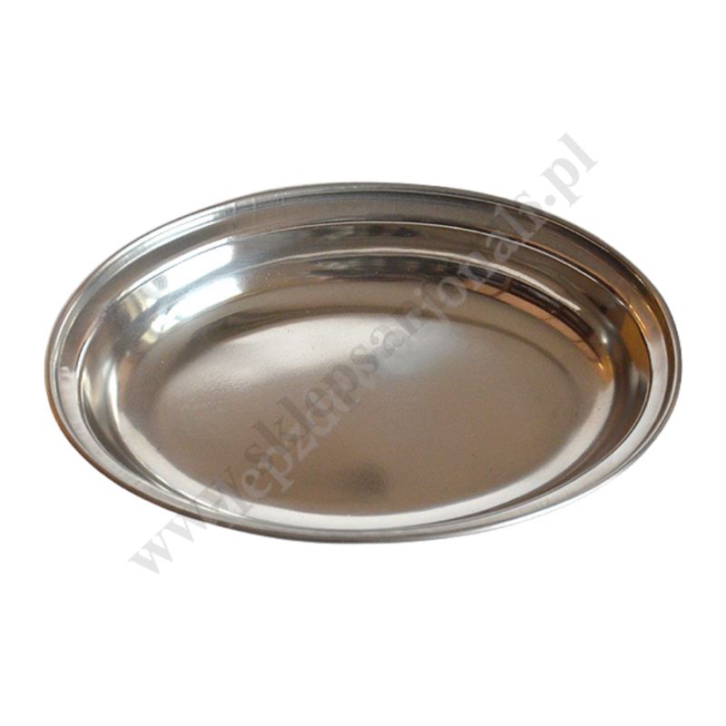 Tacka wykonana z blachy nierdzewnej o szerokości 17.5 cm i głębokości 12.5, wysokość tacki 2.7 cm.