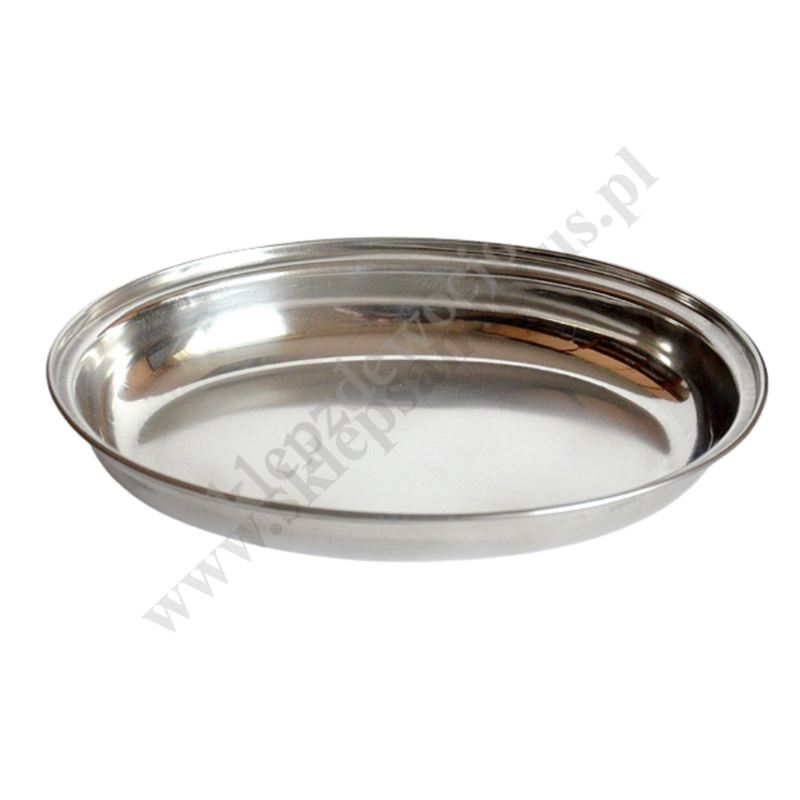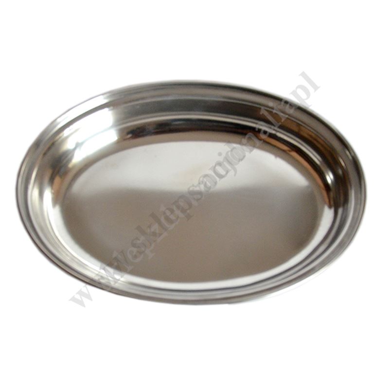 Tacka wykonana z blachy nierdzewnej o szerokości 22.6 cm i głębokości 16.5, wysokość tacki 3.5 cm.