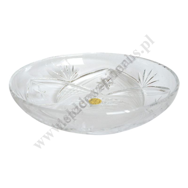 Kryształowy talerzyk o średnicy 16.6 cm i wysokości 4 cm.