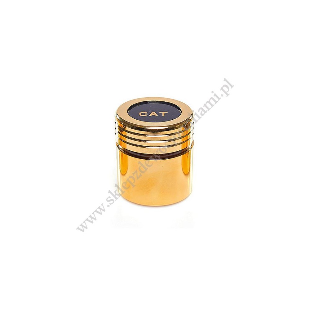 Pojemnik na olej CAT wykonany z tworzywa sztucznego o wysokości 4.3 cm i średnicy 3.7 cm.