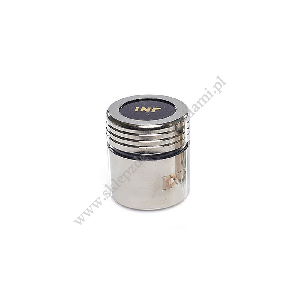 Pojemnik na olej INF wykonany z tworzywa sztucznego o wysokości 4.3 cm i średnicy 3.7 cm.