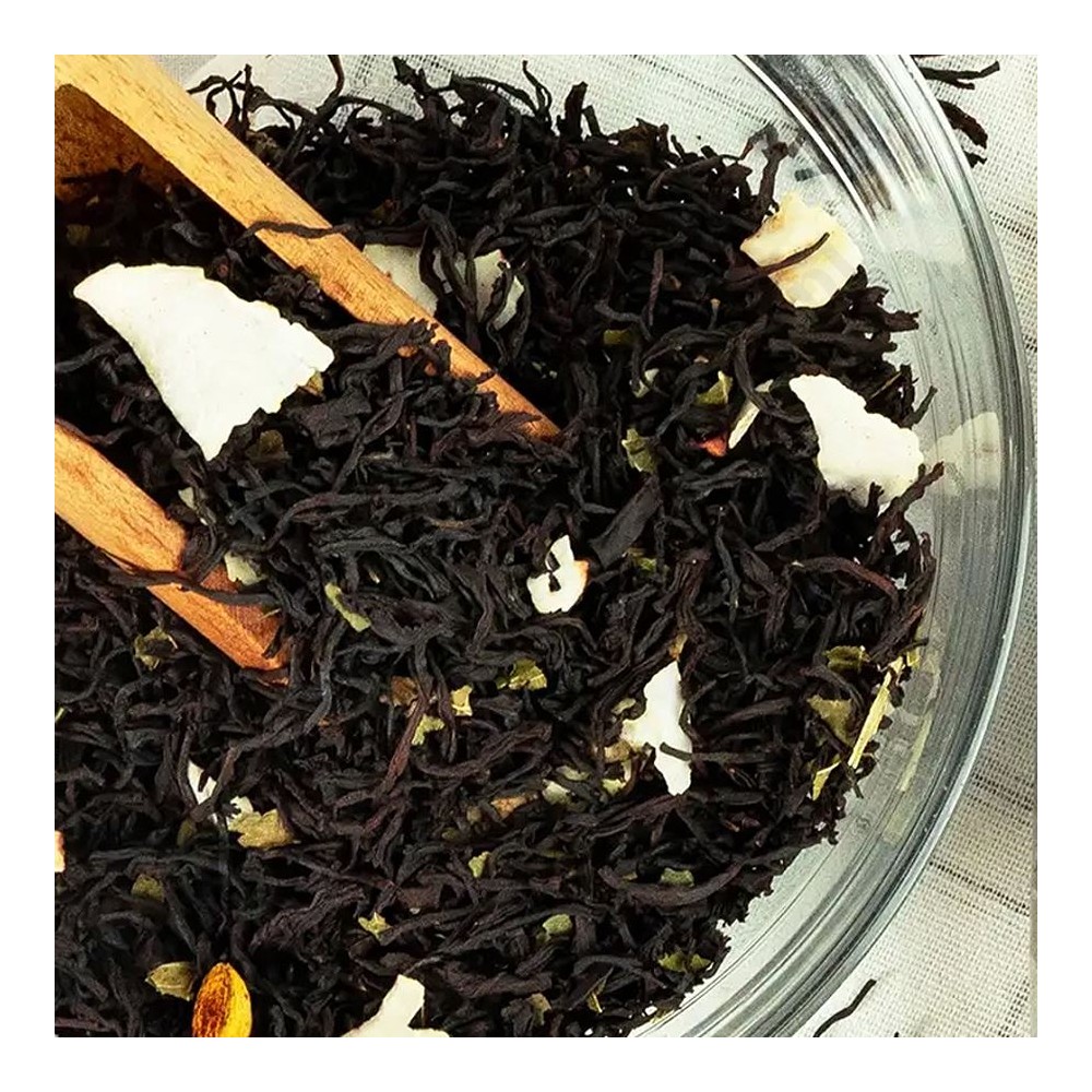 Herbata miłości Noemi to czarna herbata liściasta zawierająca słodkie owoce kandyzowanej żurawiny, soczystej pomarańczy i plasterki wiśni oprószone zostały śnieżno-białymi chipsami kokosowymi. Delikatne liście morwy białej i garstka kardamonu w połączeniu ze słodkimi aromatami w perfekcyjny sposób podkreślają charakter tej mieszanki.