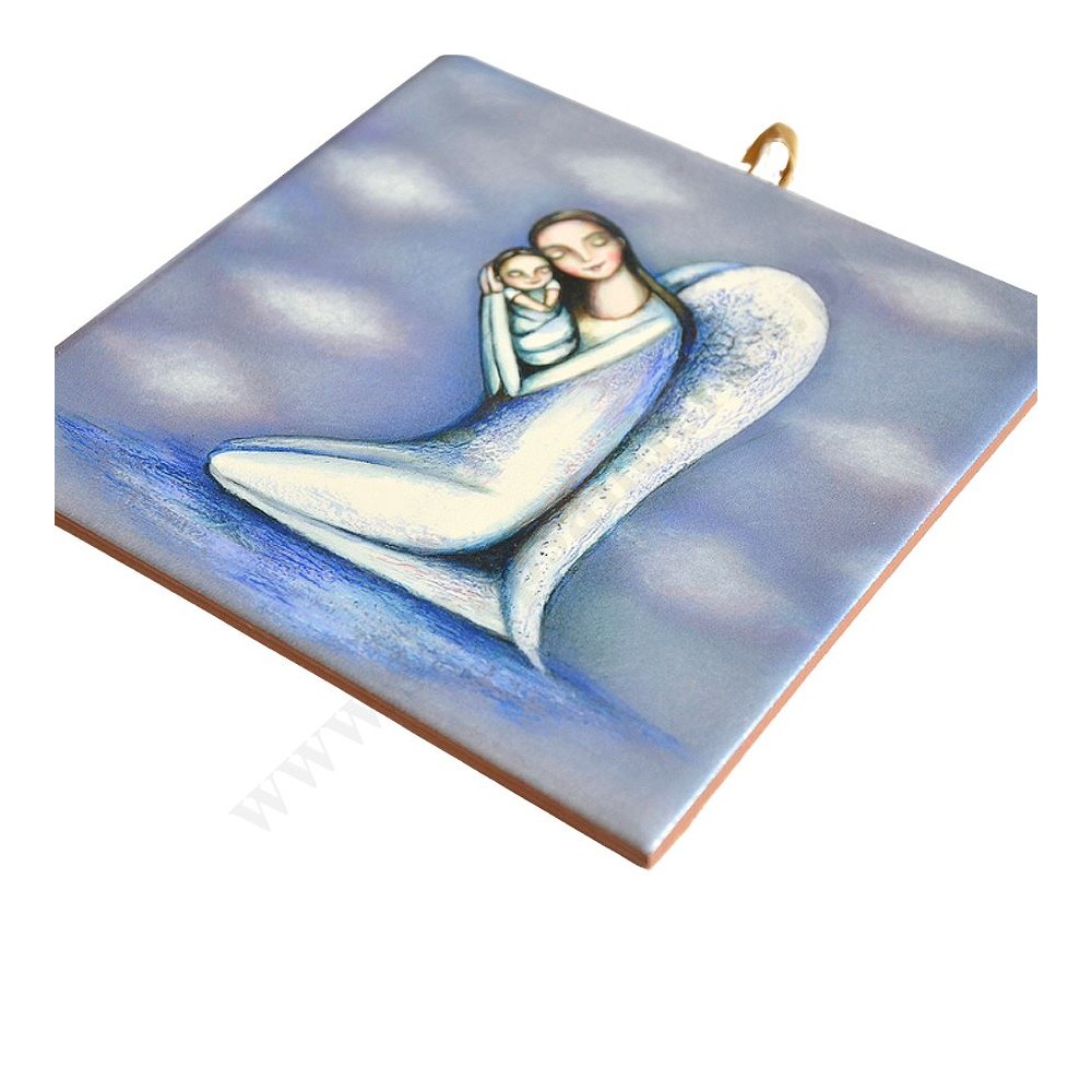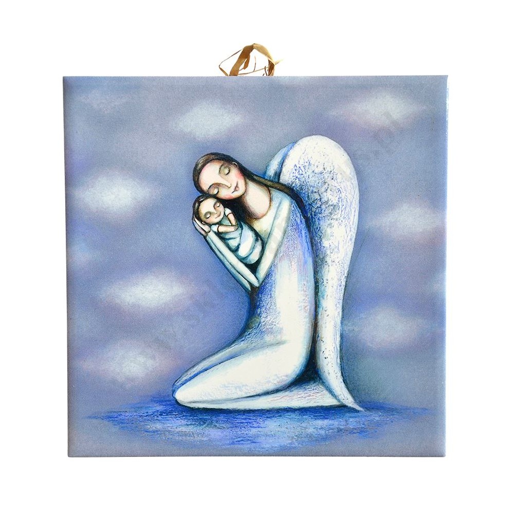 ANIOŁ I DZIECKO - obrazek na ceramice 15 x 15 cm - 56951