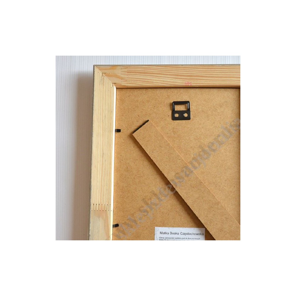 Obraz Matki Bożej Częstochowskiej w formacie 25 cm x 31 cm wykonany w metaloplastyce za szybą w drewnianej ramie. Obraz do postawienia jak i powieszenia.