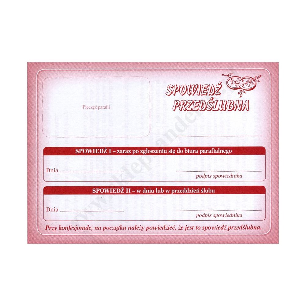 KARTA SPOWIEDZI PRZEDŚLUBNEJ - format 14 x 10.3 cm - paczka 50 szt. - 76166