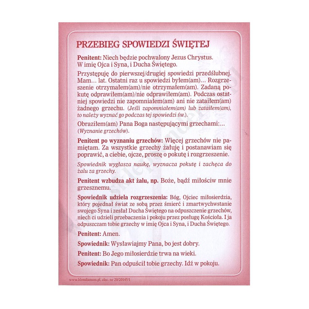 Karta spowiedzi przedślubnej w formacie 14 x 10.3 cm, sprzedaż w paczkach po 50 szt.