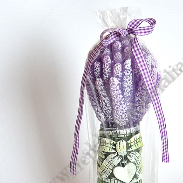 Świeca w kształcie bukietu o zapachu lawendy. Wysokość świecy 22 cm, szerokość w najszerszym miejscu 8 cm.