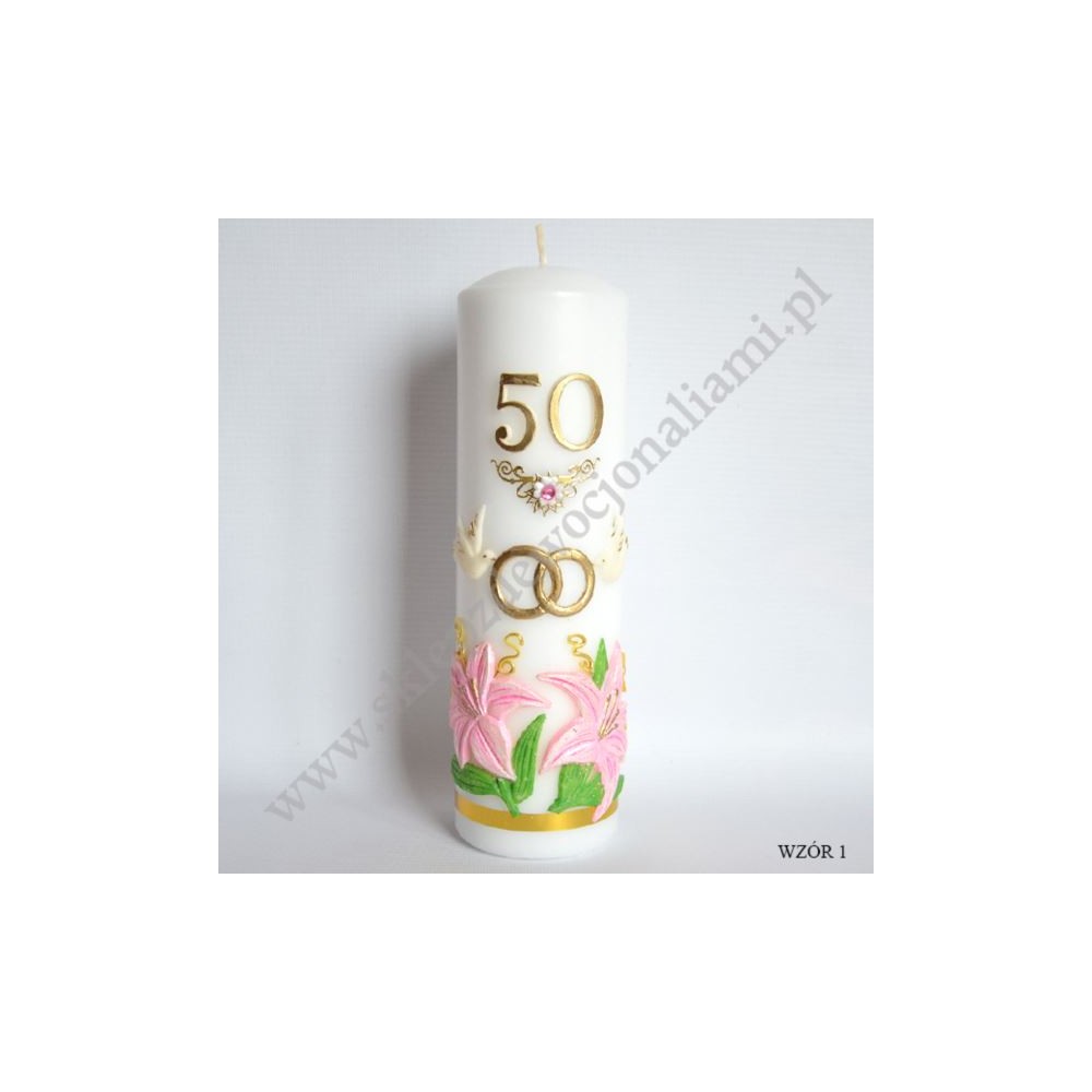 ŚWIECA JUBILEUSZOWA 50-LAT ŚLUBU - wys.25 cm - mix wzorów - 50988