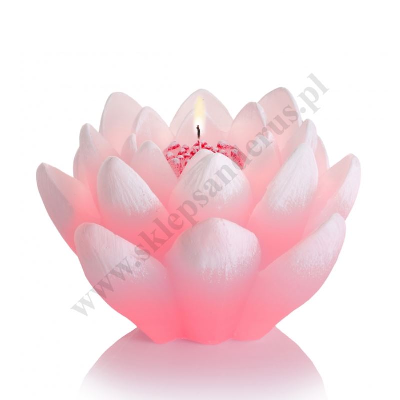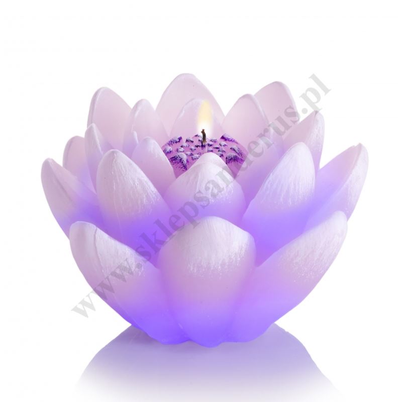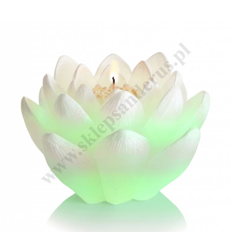 Świeca zapachowa lilia z diodą o wysokości 8.5 cm i średnicy 11.5 cm, czas palenia 17 godzin. Sprzedaż w miksie wzorów.