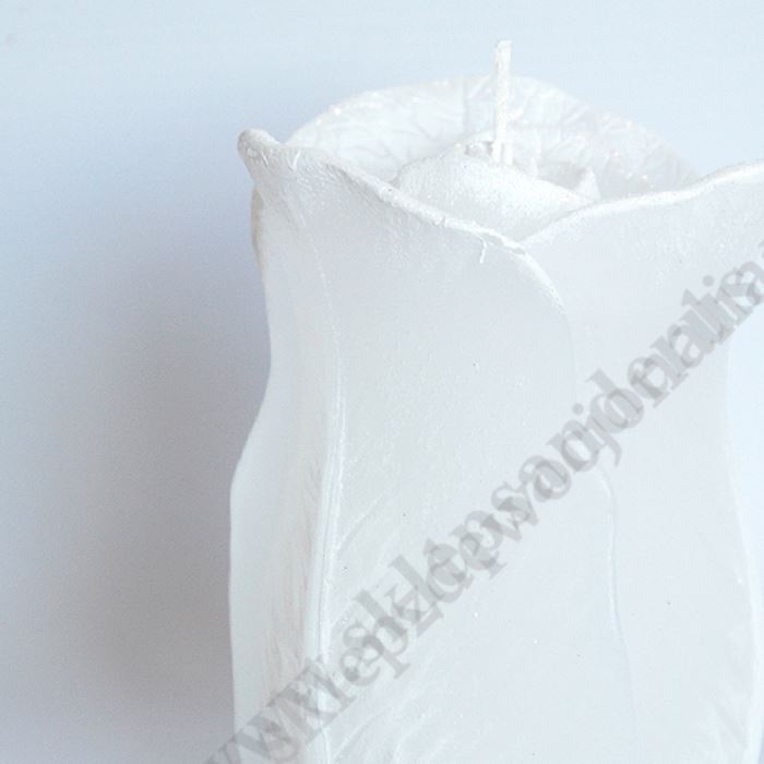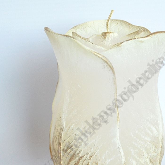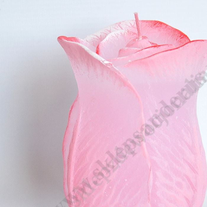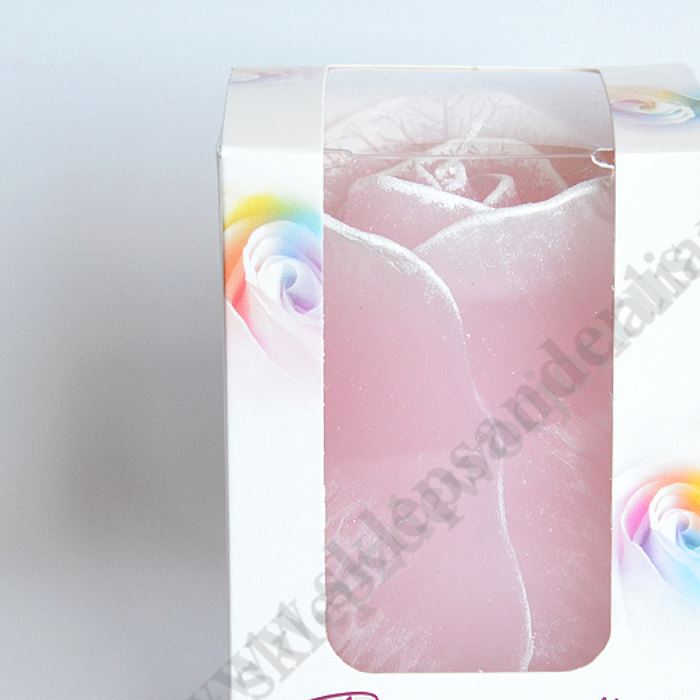 Świeca w formie kwiatu róży z świecącą diodą w środku, która zmienia kolory pod wpływem palącego się knotu. Wysokość świecy 11.5 cm, szerokość w najszerszym miejscu 8.5 cm. Zapakowana w eleganckie kartonowe pudełko. Sprzedaż w miksie wzorów.