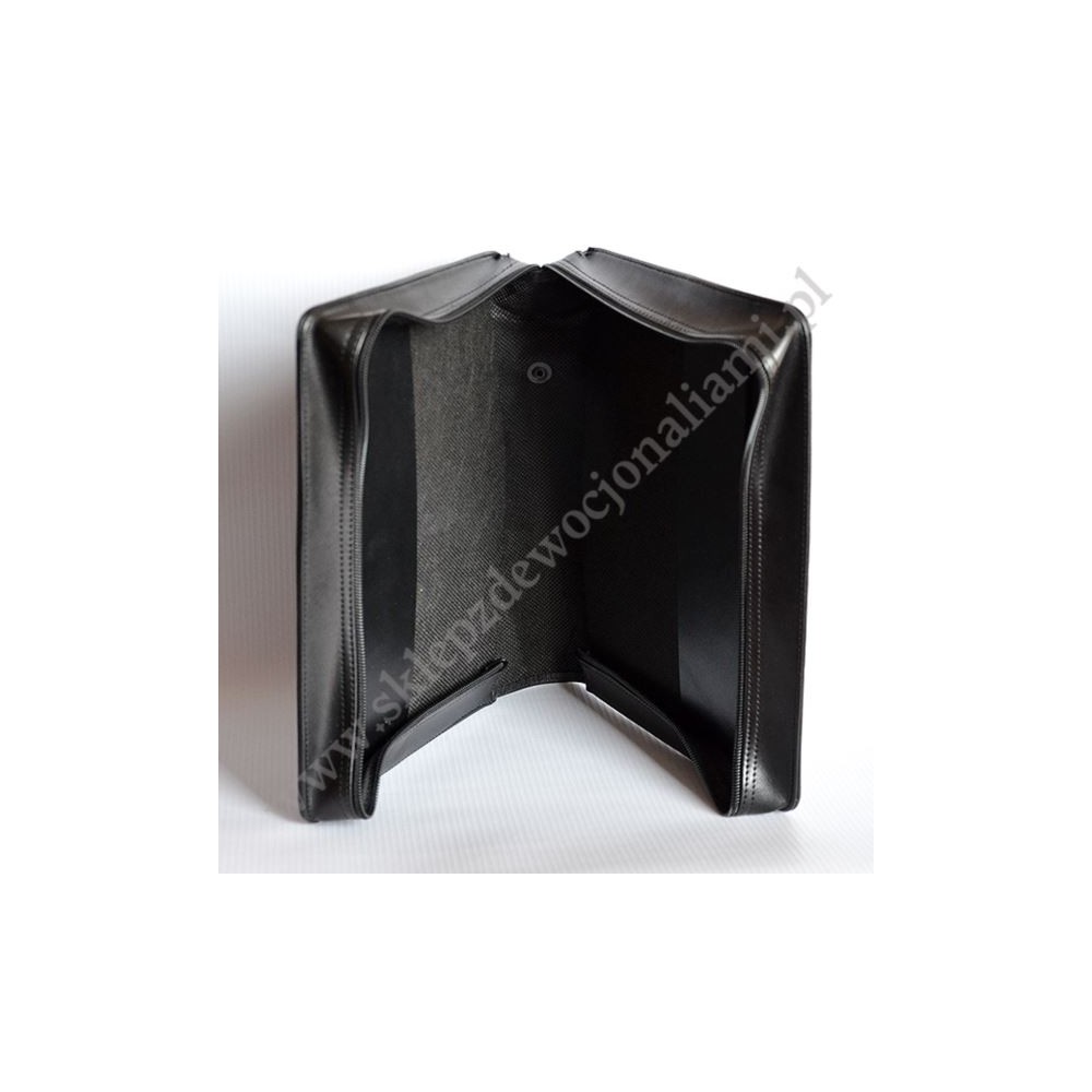 Etui wykonane z wysokogatunkowej skóry, zamykane na zamek pasujące na Pismo Święte - wydawnictwo Edycja Świętego Pawła - format 16 x 22 cm.