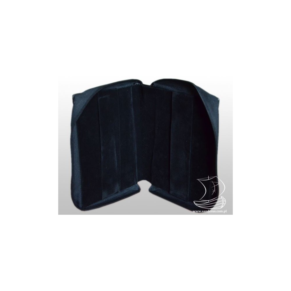 Kolor - czarna, materiał - skóra na zamek, zdobiona haftowanym napisem.
