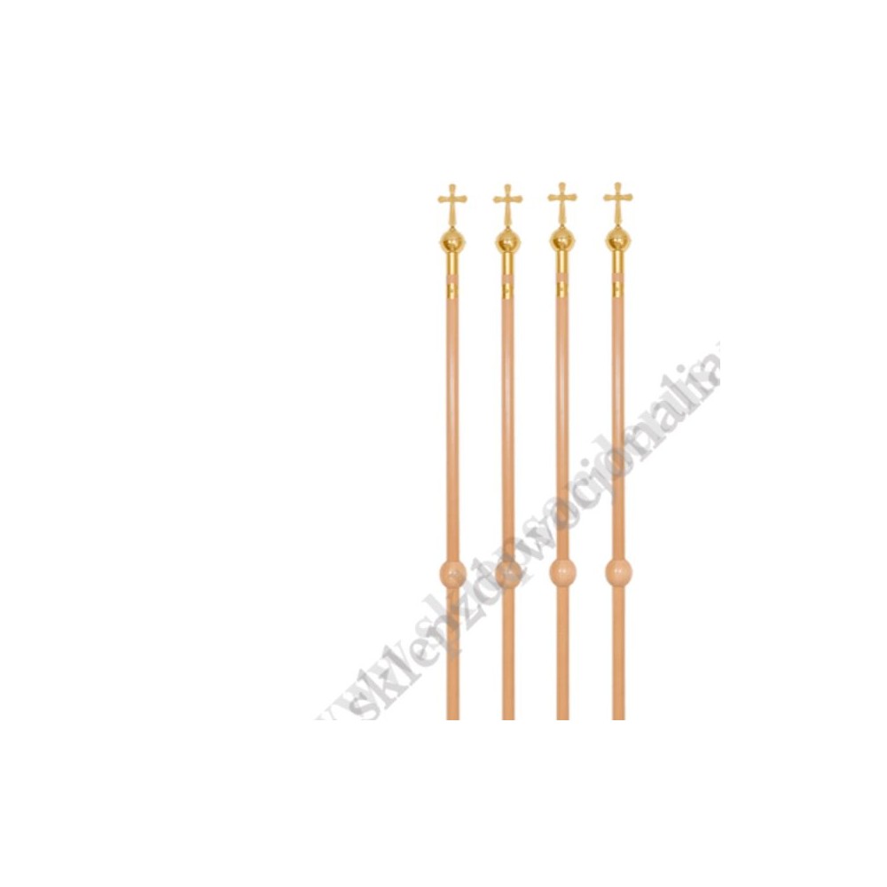 Drzewce do baldachimu z drewna bukowego jasnego. Okucia mosiężne, lakierowane. Wysokość drzewców 220 cm. Istnieje również możliwość zamówienia drzewców z drewna bukowego, bejcowane - ciemne.